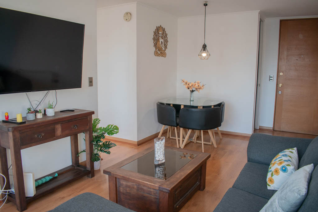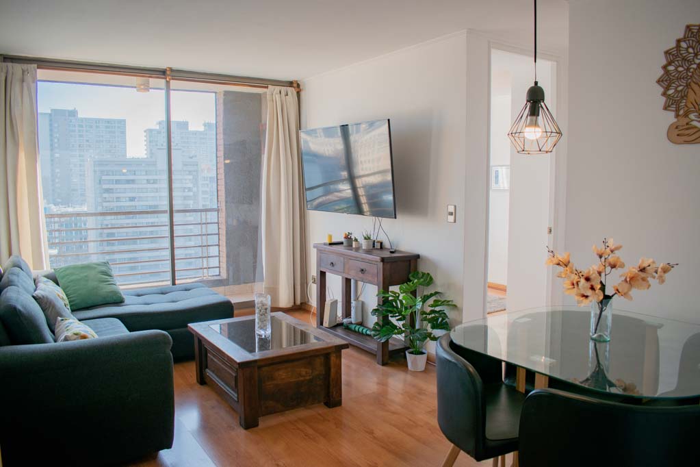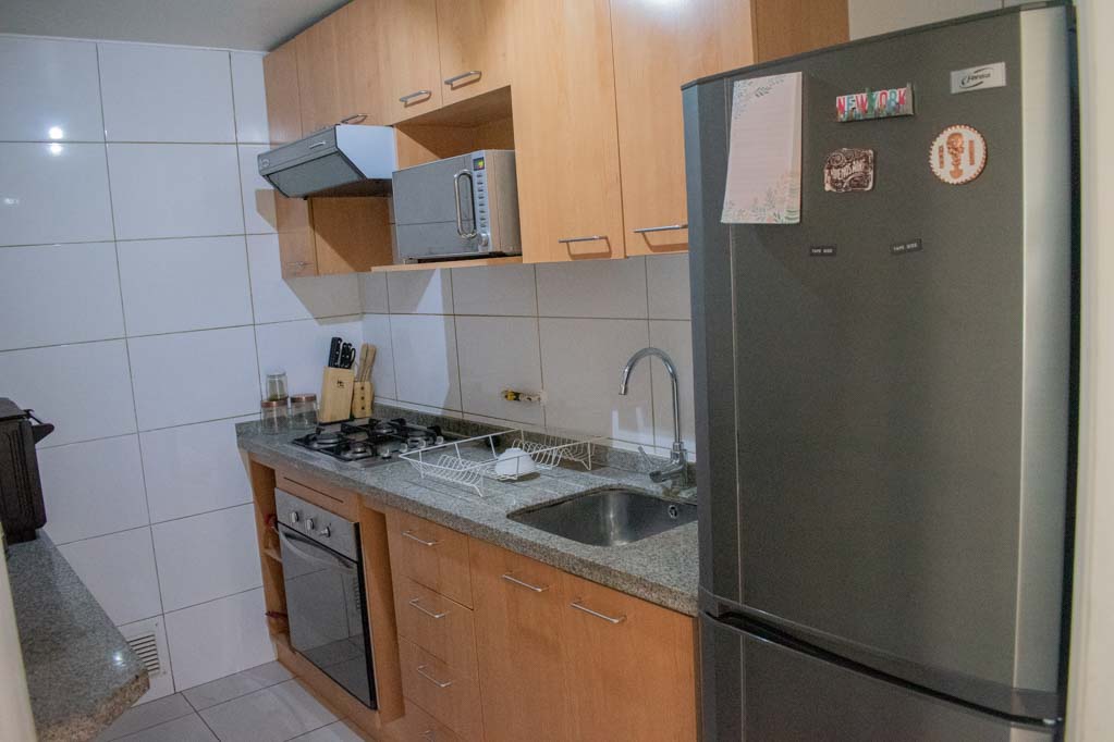 Apartamento mobiliado de 2 dormitórios localizado a 2 minutos caminhando da parada de ônibus e a 2 minutos caminhando da Estação de Metrô Parque Almagro.O apartamento tem living, sala de jantar, cozinha (fechada), 2 banheiros e varanda. O quarto 1 tem cama de casal, walk-in clóset, 2 mesas de cabeceira e banheiro privado. O quarto 2 tem closet e escrivaninha. O lugar mede 55m² + 4m² de terraço aproximadamente O custo dos serviços de condomínio, água quente, água fria, eletricidade e gás deve ser pago antecipadamente com o aluguel mensal, com um limite de consumo de $ 161USD. O imóvel tem lavanderia cujo valor é $ 2USD aproximadamente por carga de roupa (lavagem e secagem). Você deve pagar depósito de segurança, que será devolvido no final do período de locação; Também deve pagar $ 56USD ao momento de devolver o imóvel para a limpeza do lugar. Próximo ao imóvel está o Parque Almagro, que possui áreas verdes para a prática de exercícios e caminhadas; Na área destacam-se monumentos como o Palácio Causiño e a igreja de Los Sacramentinos, também se encontra o campus da Universidade Central, que proporciona um ar jovial ao setor com seus alunos. Além disso, existem vários meios de transporte público para diferentes partes da cidade.