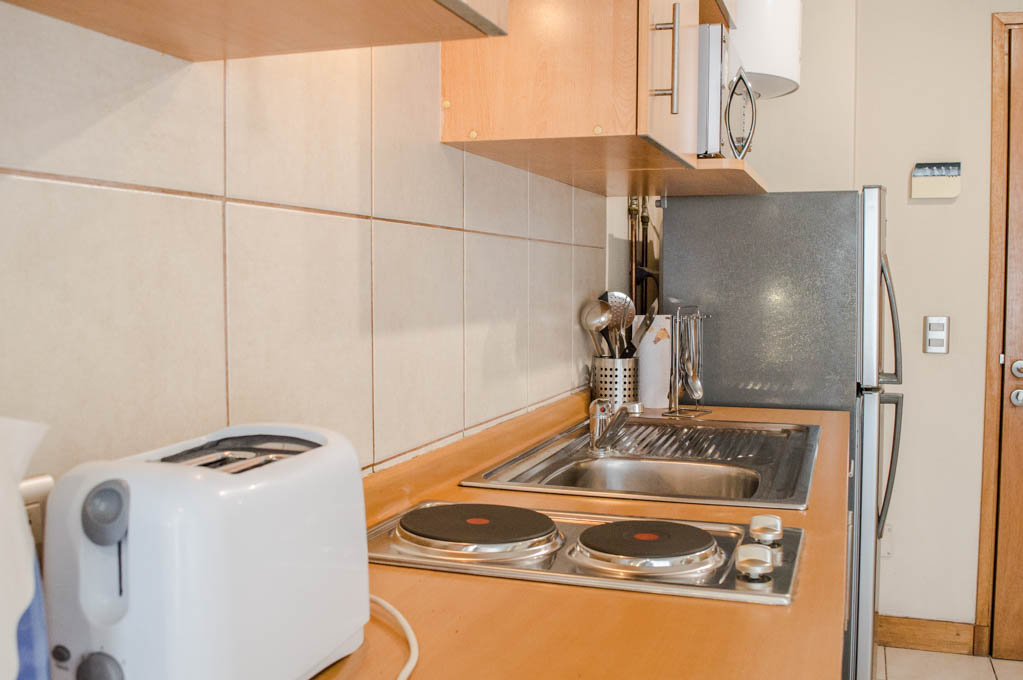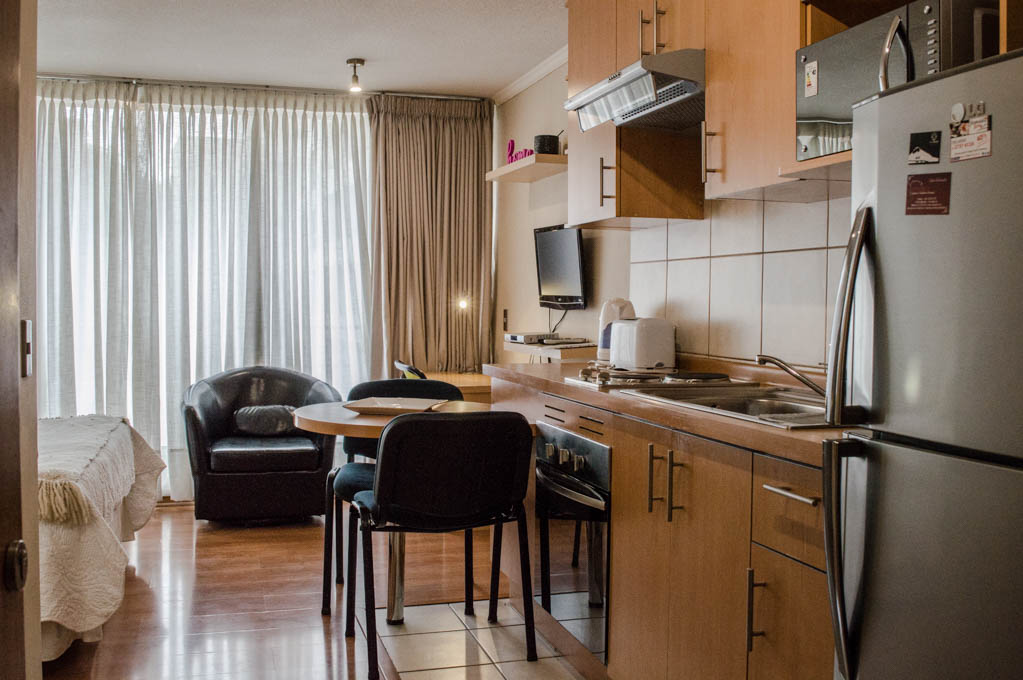 Apartamento mobiliado de um estudio localizado a 2 minutos caminhando da parada de ônibus e a 2 minutos caminhando da Estação de Metrô Universidad Católica.O apartamento tem sala de jantar, cozinha (aberta), 1 banheiro e varanda. O quarto 1 tem cama de casal, closet, 2 mesas de cabeceira, TV, escrivaninha e banheiro privado. O lugar mede 27m² + 2m² de terraço aproximadamente O custo dos serviços de condomínio, água quente, água fria, eletricidade e internet deve ser pago antecipadamente com o aluguel mensal, com um limite de consumo de $ 108USD. O imóvel tem lavanderia cujo valor é $ 1USD aproximadamente por carga de roupa (lavagem e secagem). Você deve pagar depósito de segurança, que será devolvido no final do período de locação; Também deve pagar $ 32USD ao momento de devolver o imóvel para a limpeza do lugar. Próximo ao imóvel está a Faculdade de Arquitectura da Universidade do Chile e da Casa Central da Universidade Católica. Na Avenida Bernardo O'Higgins em (mais conhecida como Alameda), você pode encontrar uma variedade de lojas, bancos, cinemas, restaurantes e transportes públicos. Nas proximidades, você também pode desfrutar do Barrio Lastarria conhecida por seus bares, cafés, restaurantes e centros culturais, como GAM.