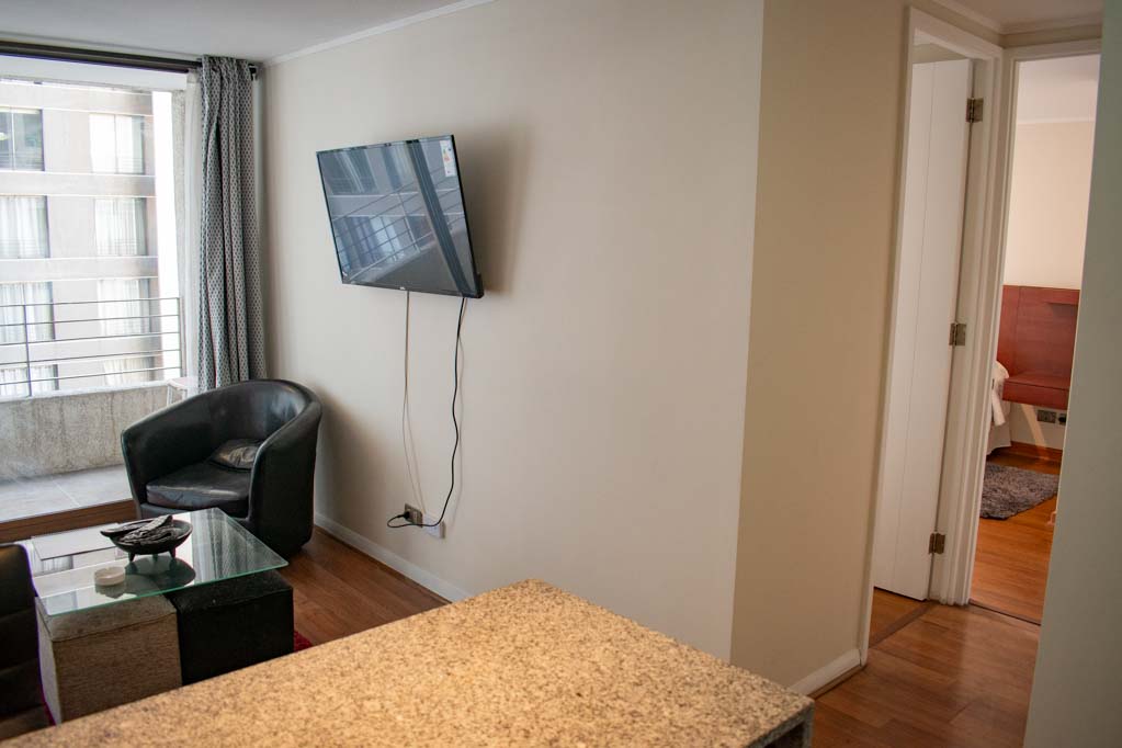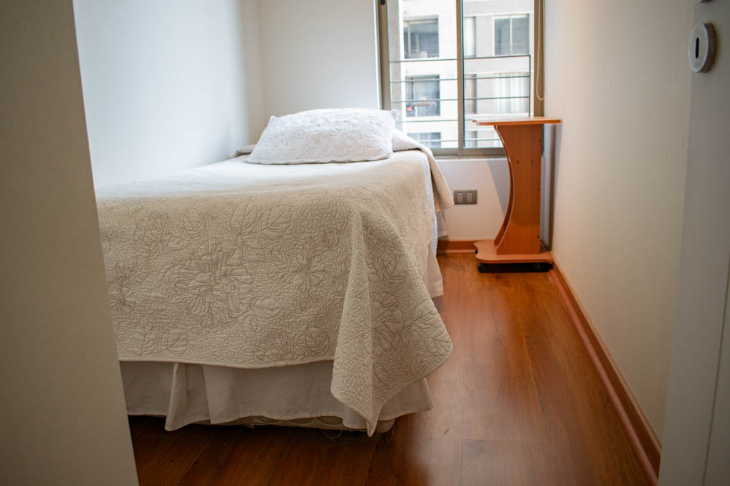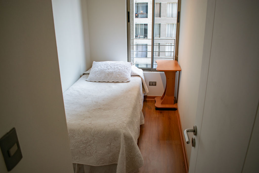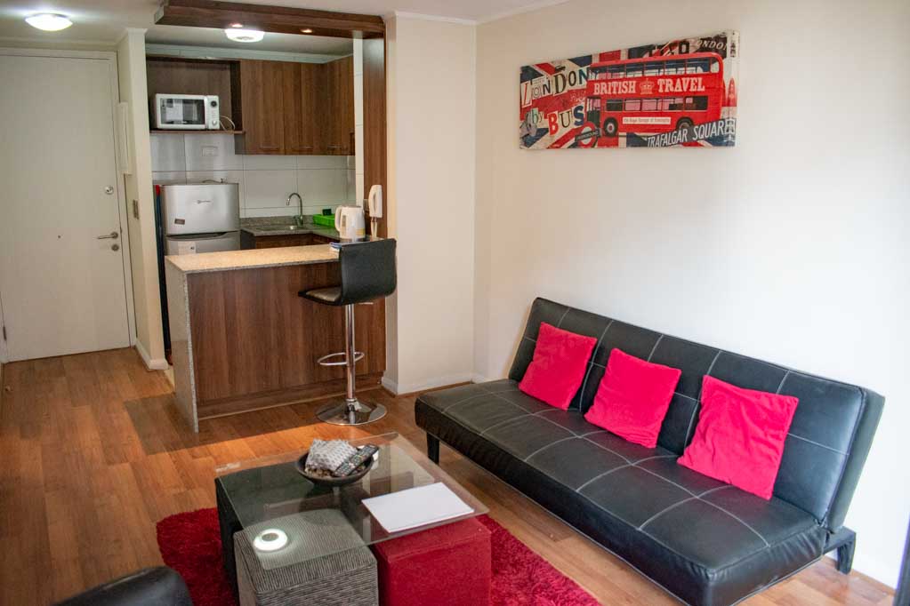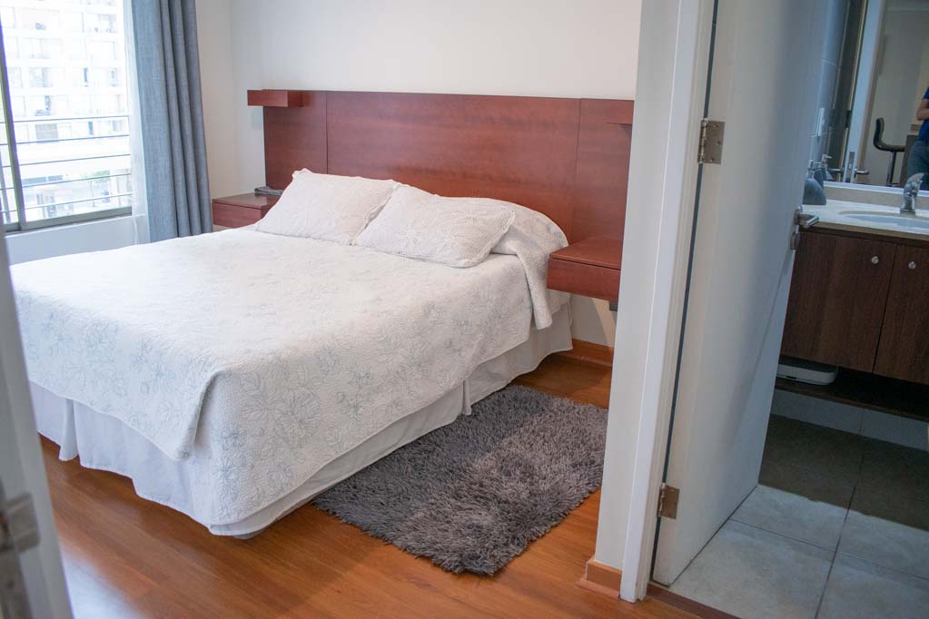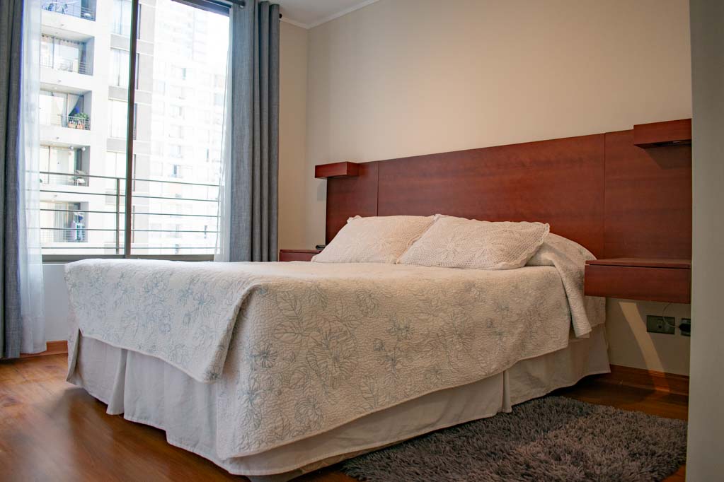 Apartamento mobiliado de 2 dormitórios localizado a 1 minuto caminhando da parada de ônibus e a 4 minutos caminhando da Estação de Metrô Toesca.O apartamento tem living, sala de jantar, cozinha (aberta), 2 banheiros e terraço. O quarto 1 tem cama de casal, walk-in clóset, 2 mesas de cabeceira e banheiro privado. O quarto 2 tem cama de solteiro, closet e mesa de cabeceira. O lugar mede 46m² + 3m² de terraço aproximadamente Deve ser considerado, o pagamento das despesas de serviços de condomínio, água quente, água fria e eletricidade que somam $ 151USD aproximadamente. O imóvel tem lavanderia cujo valor é $ 2USD aproximadamente por carga de roupa (lavagem e secagem). Você deve pagar depósito de segurança, que será devolvido no final do período de locação; Também deve pagar $ 35USD ao momento de devolver o imóvel para a limpeza do lugar. Próximo ao imóvel está o Palacio Cousiño, um monumento nacional e um dos museus mais importantes de Santiago; ele está dentro do Parque Almagro, 12 hectares do parque, onde você também pode ver várias esculturas; a igreja dos Sacramentinos, entre outras atrações.