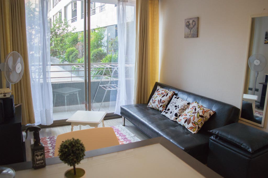 Apartamento mobiliado de 1 dormitório localizado a 8 minutos caminhando da parada de ônibus e a 8 minutos caminhando da Estação de Metrô Santa Lucía.O apartamento tem living, sala de jantar, cozinha (aberta), 1 banheiro e varanda. O quarto 1 tem cama de casal, closet, 2 mesas de cabeceira, TV e banheiro privado. O lugar mede 32m² + 4m² de terraço aproximadamente O custo dos serviços de condomínio e água quente deve ser pago antecipadamente com o aluguel mensal, com um limite de consumo de $ 77USD. Além disso, deve ser considerado, o pagamento das despesas de serviços de água fria e eletricidade que somam $ 38USD aproximadamente. Você deve pagar depósito de segurança, que será devolvido no final do período de locação; Também deve pagar $ 27USD ao momento de devolver o imóvel para a limpeza do lugar. Próximo ao imóvel está a Biblioteca Nacional, Teatro Municipal de Santiago, Art Cinema, feiras de artesanato, centros culturais e do Cerro Santa Lucia, principal foco de turismo e passeios dominical pelas atrações que apresenta, como; fontes de água, terraços e varandas, onde pode desfrutar de uma privilegiada vista de Santiago.