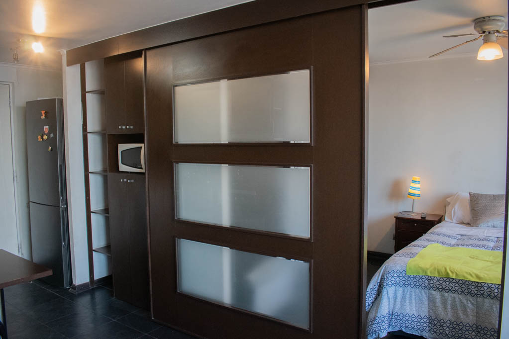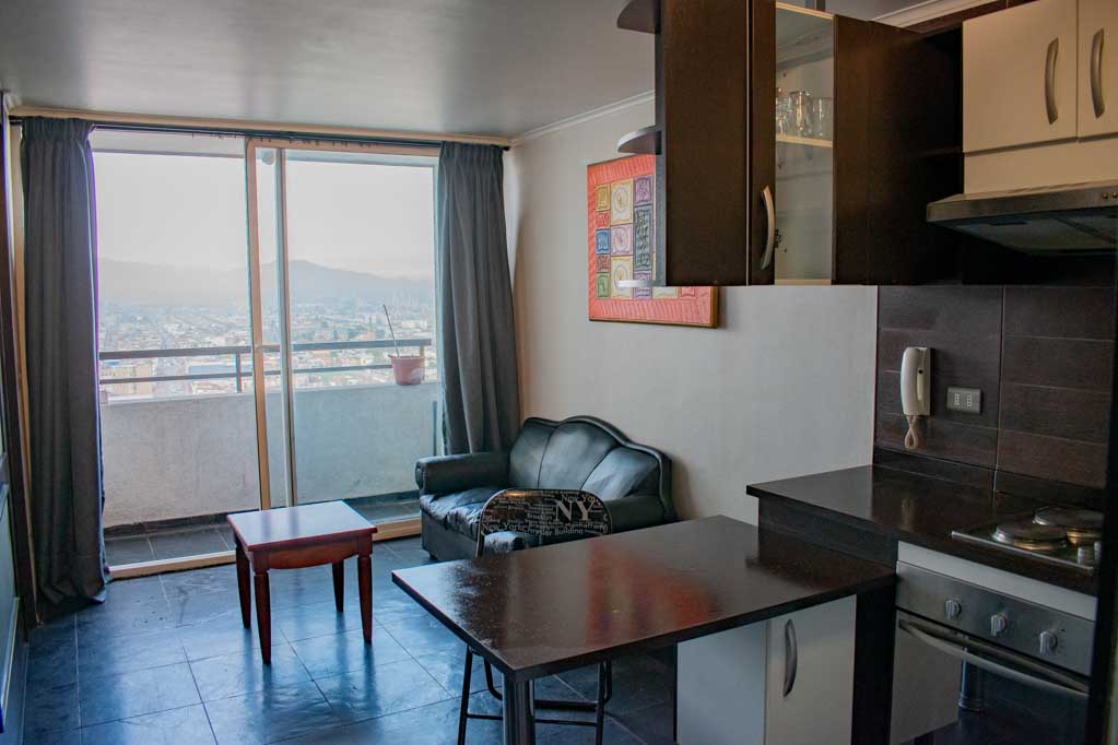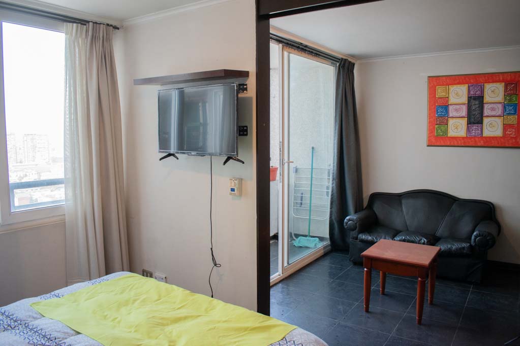 Apartamento mobiliado de 1 dormitório localizado a 4 minutos caminhando da parada de ônibus e a 10 minutos caminhando da Estação de Metrô Santa Isabel.O apartamento tem living, sala de jantar, cozinha (aberta), 1 banheiro e varanda. O quarto 1 tem cama de casal, 2 closets, 2 mesas de cabeceira, TV e banheiro privado. O lugar mede 37m² + 3m² de terraço aproximadamente O custo dos serviços de condomínio, água quente, água fria e eletricidade deve ser pago antecipadamente com o aluguel mensal, com um limite de consumo de $ 124USD. O imóvel tem lavanderia cujo valor é $ 1USD aproximadamente por carga de roupa (lavagem e secagem). Você deve pagar depósito de segurança, que será devolvido no final do período de locação; Também deve pagar $ 43USD ao momento de devolver o imóvel para a limpeza do lugar. Próximo ao imóvel está los emblemáticos Liceo Arturo Alessandri Palma e o Liceo Carmela Carvajal de Prat; localizado no bairro Santa Isabel, que tem crescido exponencialmente ao longo dos anos devido ao desenvolvimento imobiliário de grande porte que tem permitido a geração de áreas verdes e instalações desportivas. No mesmo sector é o bairro de Itália, onde se instalaram muitos artistas, estilistas, mestres da gastronomia, pequenas empresas, e até mesmo oficinas mecânicas.