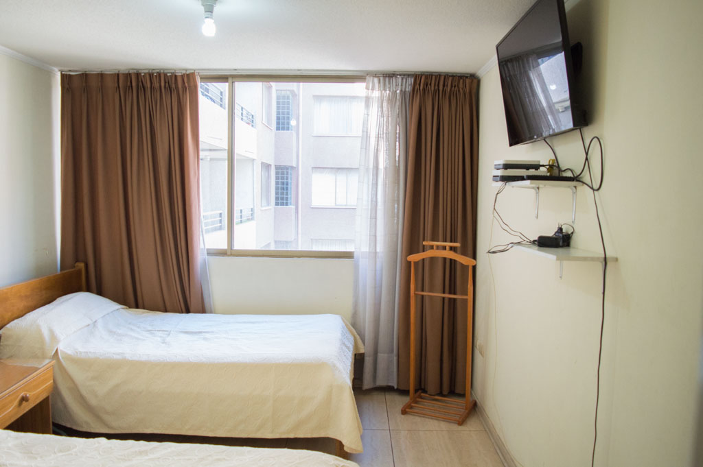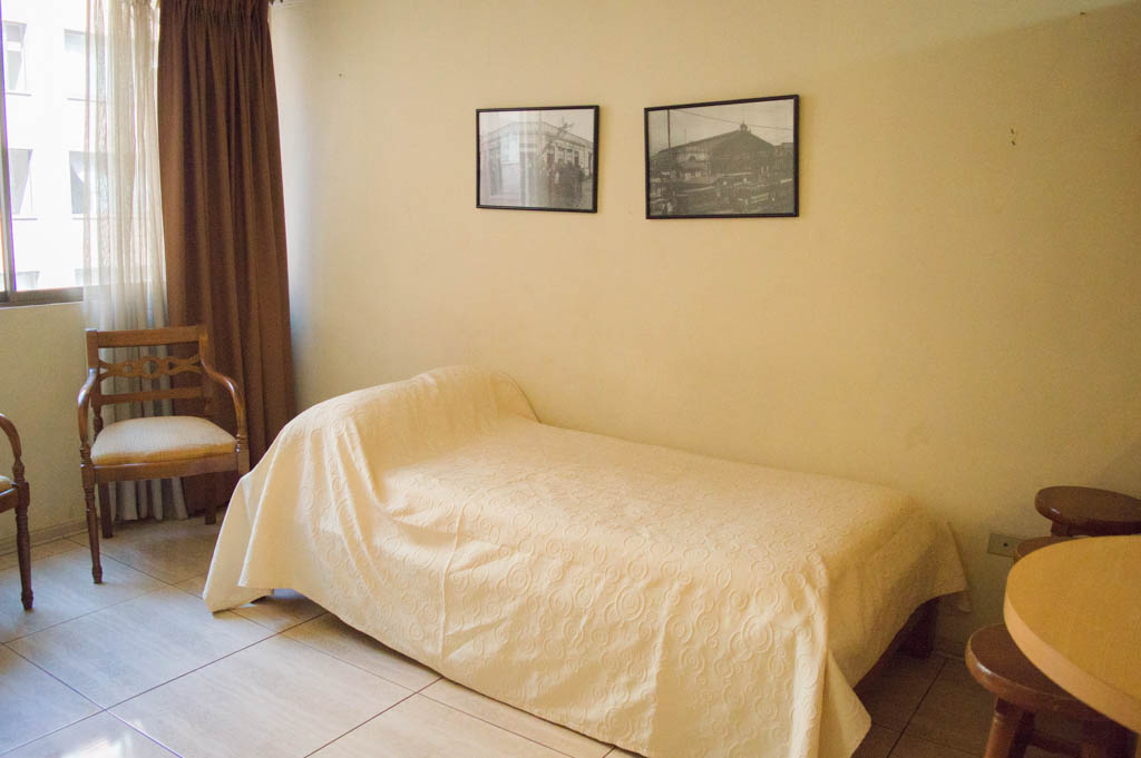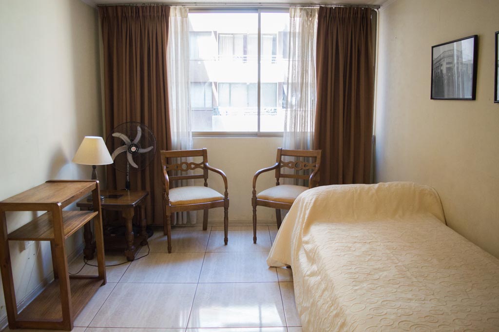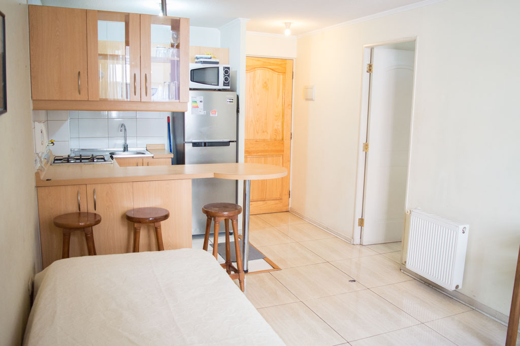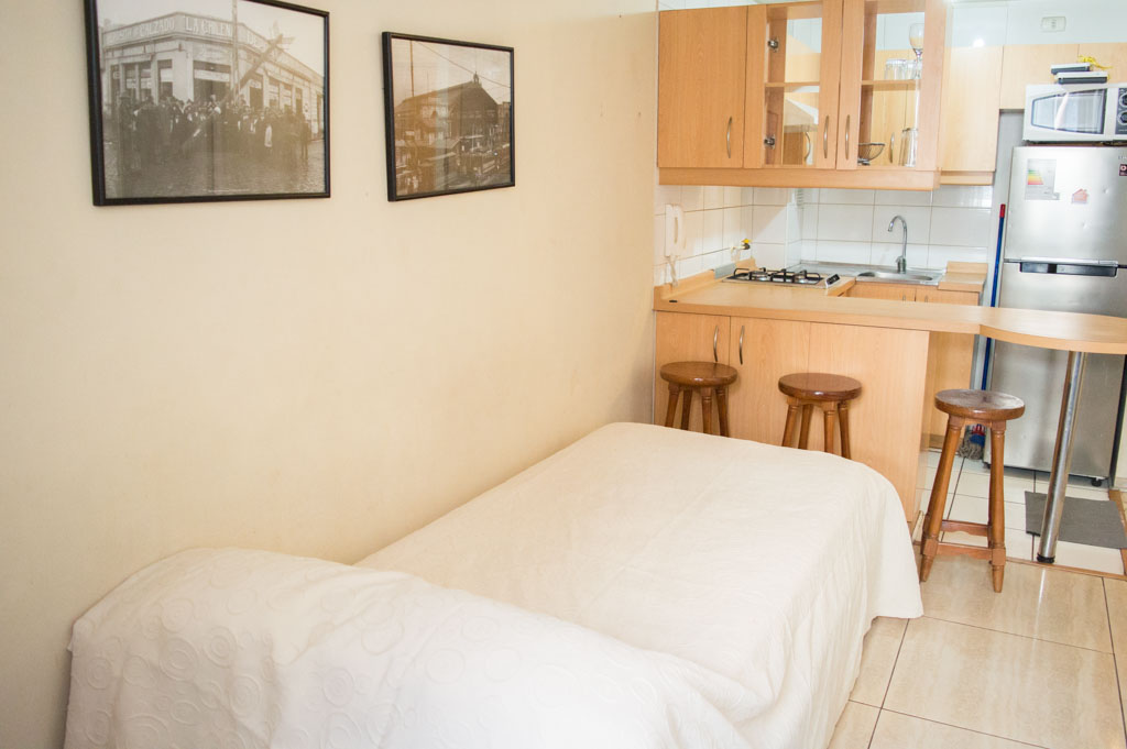 Apartamento mobiliado de 1 dormitório localizado a 2 minutos caminhando da parada de ônibus e a 5 minutos caminhando da Estação de Metrô Universidad de Chile.O apartamento tem living, sala de jantar, cozinha (aberta) e 1 banheiro. O quarto 1 tem 2 camas de solteiro, walk-in clóset, mesa de cabeceira e banheiro privado. O lugar mede aproximadamente 34m². O custo dos serviços de condomínio, água quente, água fria, eletricidade, gás e internet deve ser pago antecipadamente com o aluguel mensal, com um limite de consumo de $ 162USD. O imóvel tem lavanderia cujo valor é $ 1USD aproximadamente por carga de roupa (lavagem e secagem). Você deve pagar depósito de segurança, que será devolvido no final do período de locação; Também deve pagar $ 41USD ao momento de devolver o imóvel para a limpeza do lugar. Próximo ao imóvel está a Avenida Bernardo O'Higgins (mais conhecida como Alameda), onde existem várias lojas, uma variedade de transportes públicos e o centro cívico de Santiago. A passos da estação de metrô se encontra o emblemático Instituto Nacional José Miguel Carrera, a Universidade do Chile e o Teatro Municipal de Santiago.