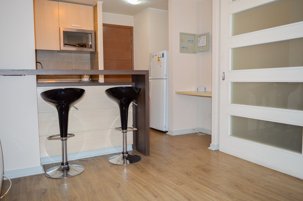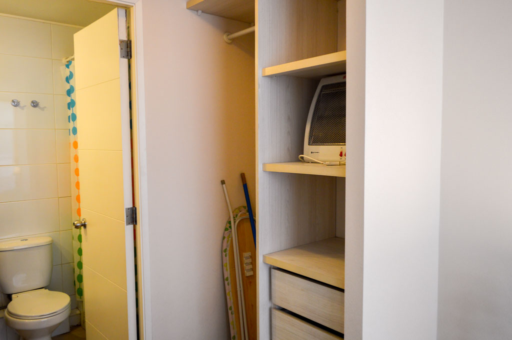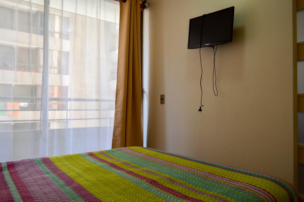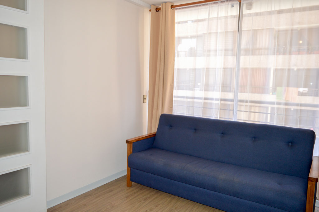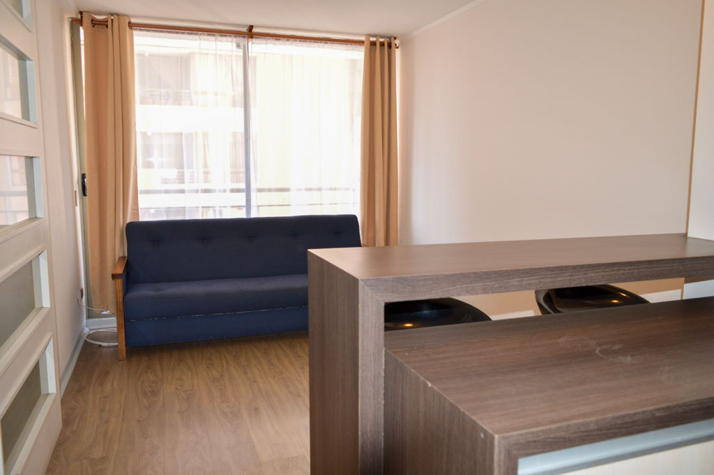 Apartamento mobiliado de 1 dormitório localizado a 2 minutos caminhando da parada de ônibus e a 6 minutos caminhando da Estação de Metrô Santa Lucía.O apartamento tem living, sala de jantar, cozinha (aberta), 1 banheiro e varanda. O quarto 1 tem cama de casal, closet, 2 mesas de cabeceira, TV e banheiro privado. O lugar mede 33m² + 3m² de terraço aproximadamente O custo dos serviços de condomínio, água quente, água fria e eletricidade deve ser pago antecipadamente com o aluguel mensal, com um limite de consumo de $ 127USD. O imóvel tem lavanderia cujo valor é $ 2USD aproximadamente por carga de roupa (lavagem e secagem). Você deve pagar depósito de segurança, que será devolvido no final do período de locação; Também deve pagar $ 58USD ao momento de devolver o imóvel para a limpeza do lugar. Próximo ao imóvel está a Biblioteca Nacional, Teatro Municipal de Santiago, Art Cinema, feiras de artesanato, centros culturais e do Cerro Santa Lucia, principal foco de turismo e passeios dominical pelas atrações que apresenta, como; fontes de água, terraços e varandas, onde pode desfrutar de uma privilegiada vista de Santiago.