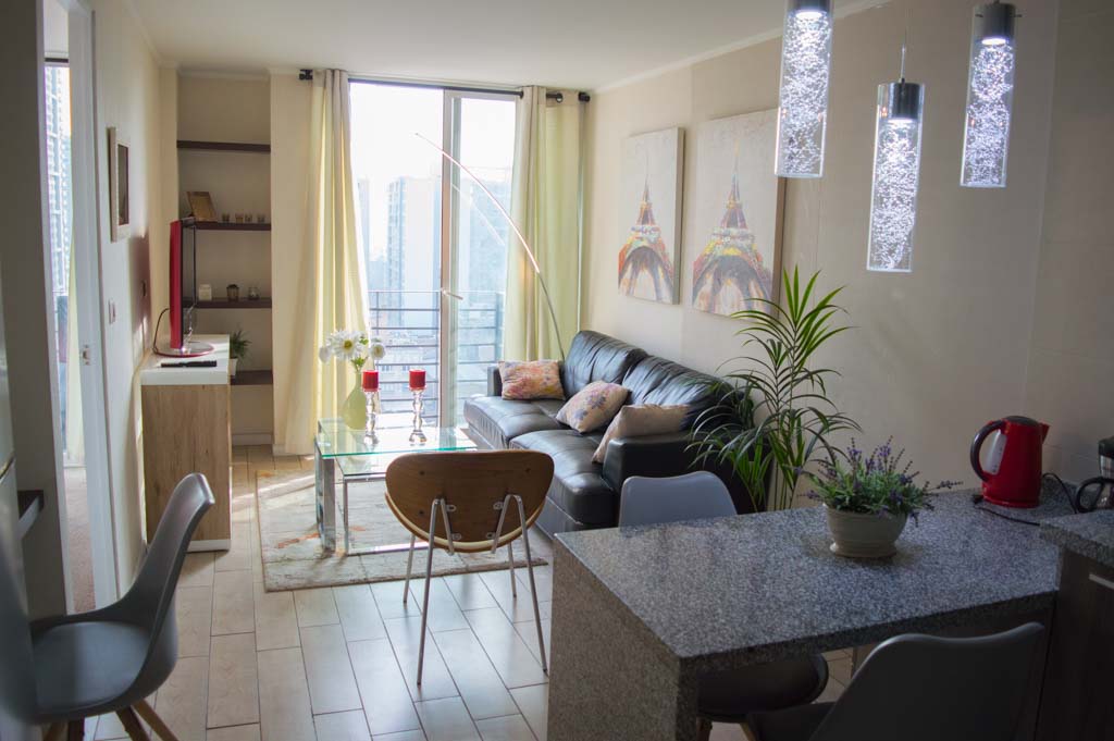 Apartamento mobiliado de 1 dormitório localizado a 7 minutos caminhando da parada de ônibus e a 7 minutos caminhando da Estação de Metrô Plaza de Armas.O apartamento tem living, sala de jantar, cozinha (aberta), 1 banheiro e varanda. O quarto 1 tem cama de casal, closet, 2 mesas de cabeceira e banheiro privado. O lugar mede 35m² + 1m² de terraço aproximadamente O custo dos serviços de condomínio, água quente, água fria e eletricidade deve ser pago antecipadamente com o aluguel mensal, com um limite de consumo de $ 110USD. O imóvel tem lavanderia cujo valor é $ 2USD aproximadamente por carga de roupa (lavagem e secagem). Você deve pagar depósito de segurança, que será devolvido no final do período de locação; Também deve pagar $ 44USD ao momento de devolver o imóvel para a limpeza do lugar. Próximo ao imóvel está a Plaza de Armas de Santiago, uma parte importante do centro histórico da cidade, conhecida pela arquitetura e infra-estruturas, como o Correio de Santiago, a Catedral de Santiago, o Municipalidade e a Casa Colorada. Este lugar tem um bom acesso e conectividade a vários pontos da cidade. O setor é caracterizado por várias instituições de serviços públicos e privados.
