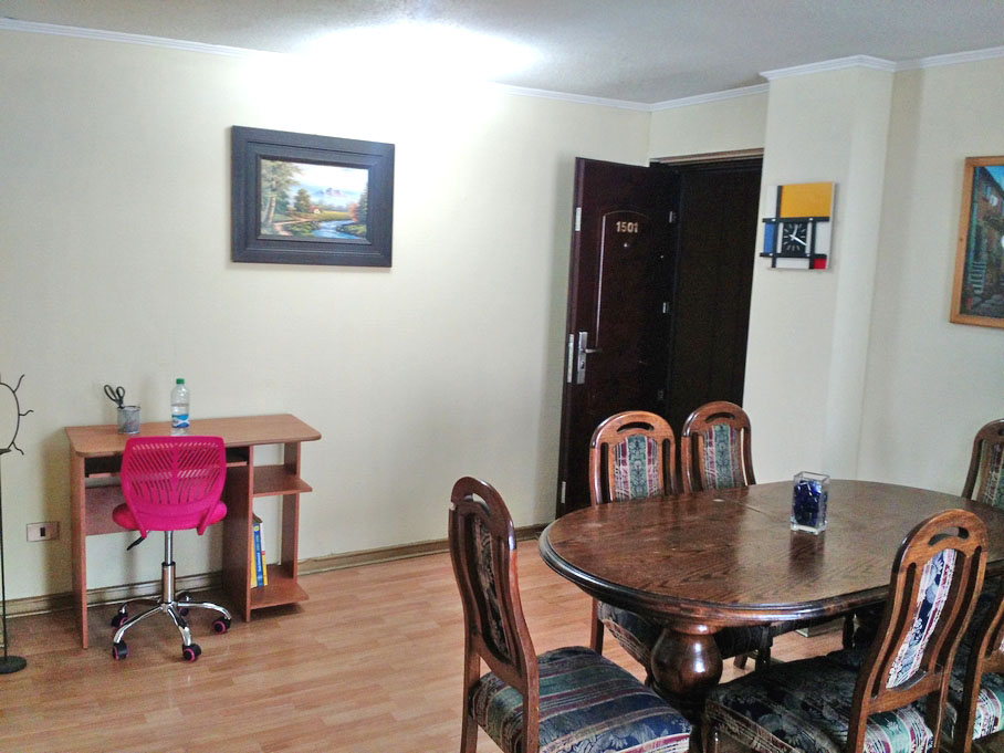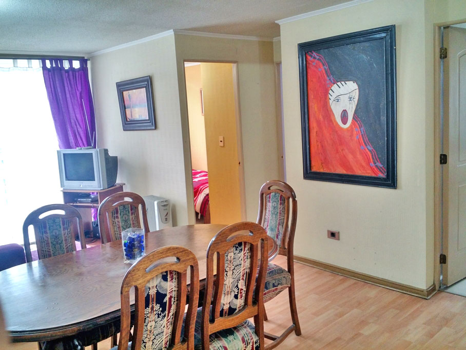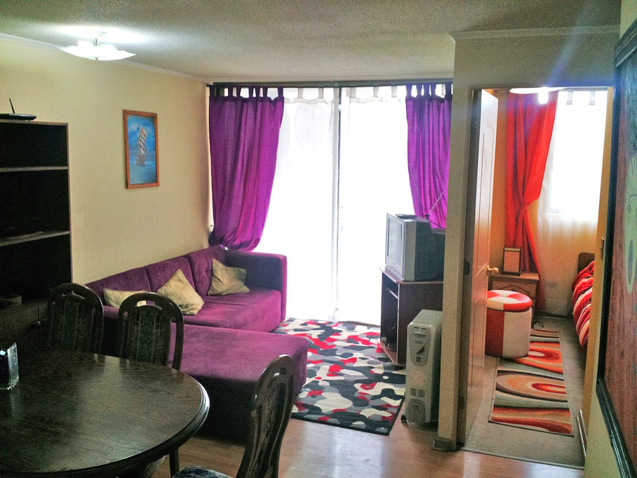 Apartamento mobiliado de 2 dormitórios localizado a 1 minuto caminhando da parada de ônibus e a 2 minutos caminhando da Estação de Metrô Santa Ana.O apartamento tem living, sala de jantar, cozinha (fechada), 2 banheiros e varanda. O quarto 1 tem cama de casal e 2 mesas de cabeceira. O quarto 2 tem cama de solteiro e mesa de cabeceira. O lugar mede 48m² + 2m² de terraço aproximadamente. O custo dos serviços de condomínio, água quente, água fria, eletricidade e gás deve ser pago antecipadamente com o aluguel mensal, com um limite de consumo de $ 126USD. O imóvel tem lavanderia (lavagem e secagem). Você deve pagar depósito de segurança, que será devolvido no final do período de locação; Também deve pagar $ 34USD ao momento de devolver o imóvel para a limpeza do lugar. Próximo ao imóvel está os simbólicos Liceo 1 Javiera Carrera e Liceo Aplicación, bem como a Igreja Paroquial de Santa Ana, um monumento nacional. A passos você pode encontrar a Plaza de Armas em Santiago, uma parte importante do centro histórico de Santiago, famosa por sua arquitetura e infra-estrutura, tais como Correio de Santiago, Catedral de Santiago, a Câmara Municipal e a Casa Colorada.