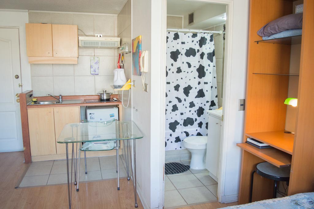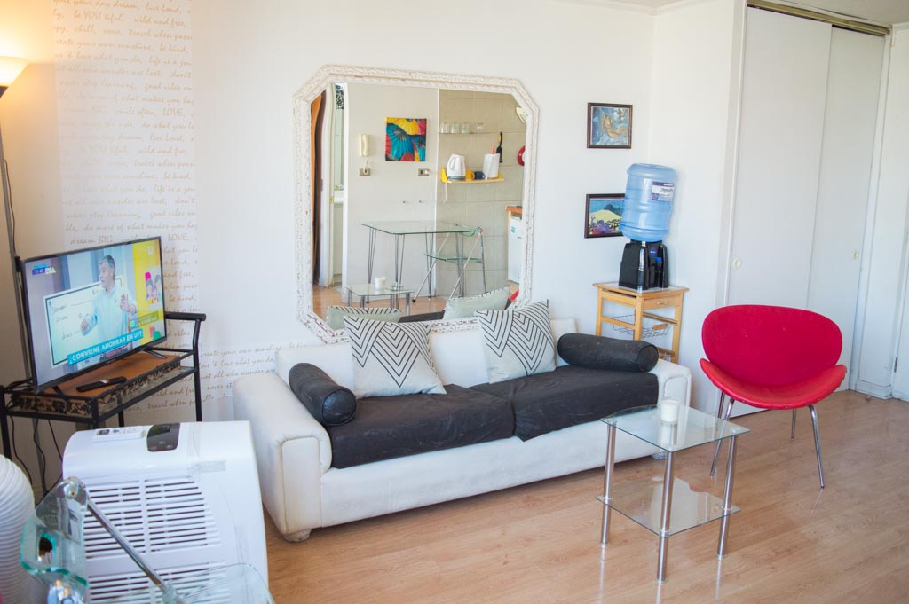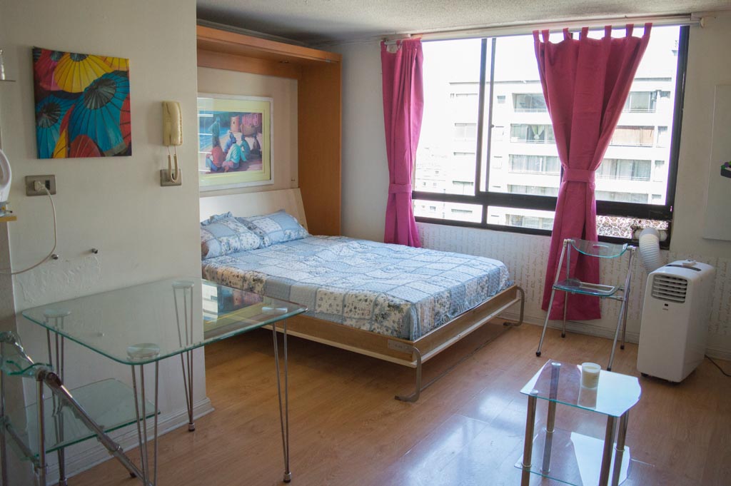 Apartamento mobiliado de um estudio localizado a 2 minutos caminhando da parada de ônibus e a 5 minutos caminhando da Estação de Metrô Bellas Artes.O apartamento tem living, sala de jantar, cozinha (aberta) e 1 banheiro. O quarto 1 tem cama de casal, closet, sofá, TV, escrivaninha e banheiro privado. O lugar mede aproximadamente 25m². O custo dos serviços de condomínio, água quente, água fria, eletricidade e internet deve ser pago antecipadamente com o aluguel mensal, com um limite de consumo de $ 148USD. O imóvel tem lavanderia cujo valor é $ 2USD aproximadamente por carga de roupa (lavagem e secagem). Você deve pagar depósito de segurança, que será devolvido no final do período de locação; Também deve pagar $ 27USD ao momento de devolver o imóvel para a limpeza do lugar. Próximo ao imóvel está o Barrio Lastarria e Barrio Bellas Artes (bairros históricos - culturais), caracterizados por suas mansões do século XIX restauradas e utilizadas como restaurantes, cafés, bibliotecas, centros culturais, entre outros. A poucos passos de distância você pode encontrar o Museu Nacional de Belas Artes, onde é preservada a arte nacional e internacional mais valiosa e o Parque Florestal, local ideal para compartilhar com os amigos, praticar esportes e caminhar.