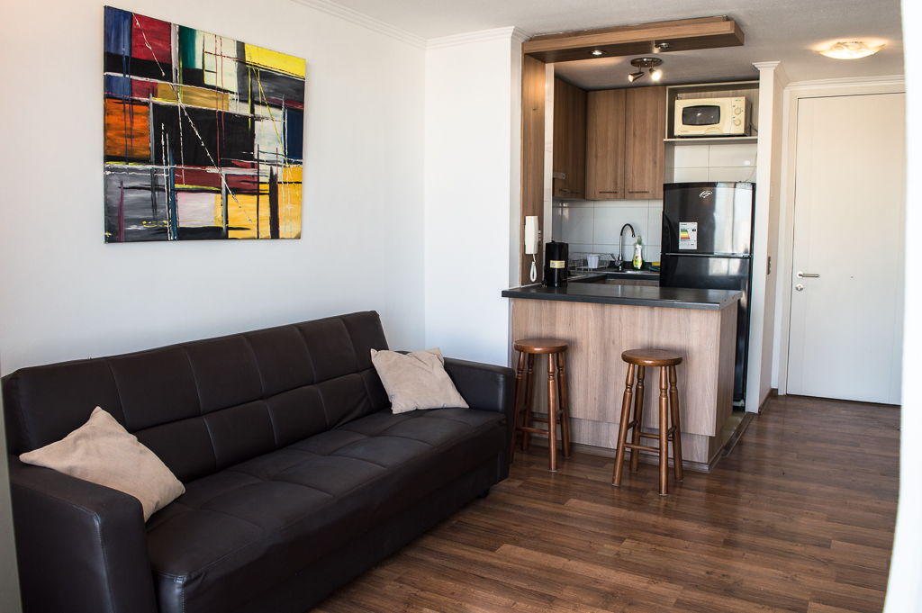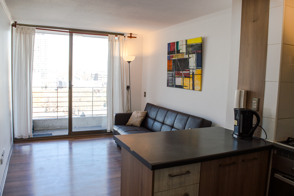 Apartamento mobiliado de 2 dormitórios localizado a 3 minutos caminhando da parada de ônibus e a 16 minutos caminhando da Estação de Metrô Toesca.O apartamento tem living, sala de jantar, cozinha (aberta), 1 banheiro e varanda. O quarto 1 tem cama de casal, walk-in clóset, mesa de cabeceira e TV. O quarto 2 tem cama de solteiro e closet. O lugar mede 44m² + 3m² de terraço aproximadamente O custo dos serviços de condomínio, água quente, água fria, eletricidade e gás deve ser pago antecipadamente com o aluguel mensal, com um limite de consumo de $ 117USD. O imóvel tem lavanderia cujo valor é $ 1USD aproximadamente por carga de roupa (lavagem e secagem). Você deve pagar depósito de segurança, que será devolvido no final do período de locação; Também deve pagar $ 29USD ao momento de devolver o imóvel para a limpeza do lugar. Próximo ao imóvel está o Palacio Cousiño, um monumento nacional e um dos museus mais importantes de Santiago; ele está dentro do Parque Almagro, 12 hectares do parque, onde você também pode ver várias esculturas; a igreja dos Sacramentinos, entre outras atrações.