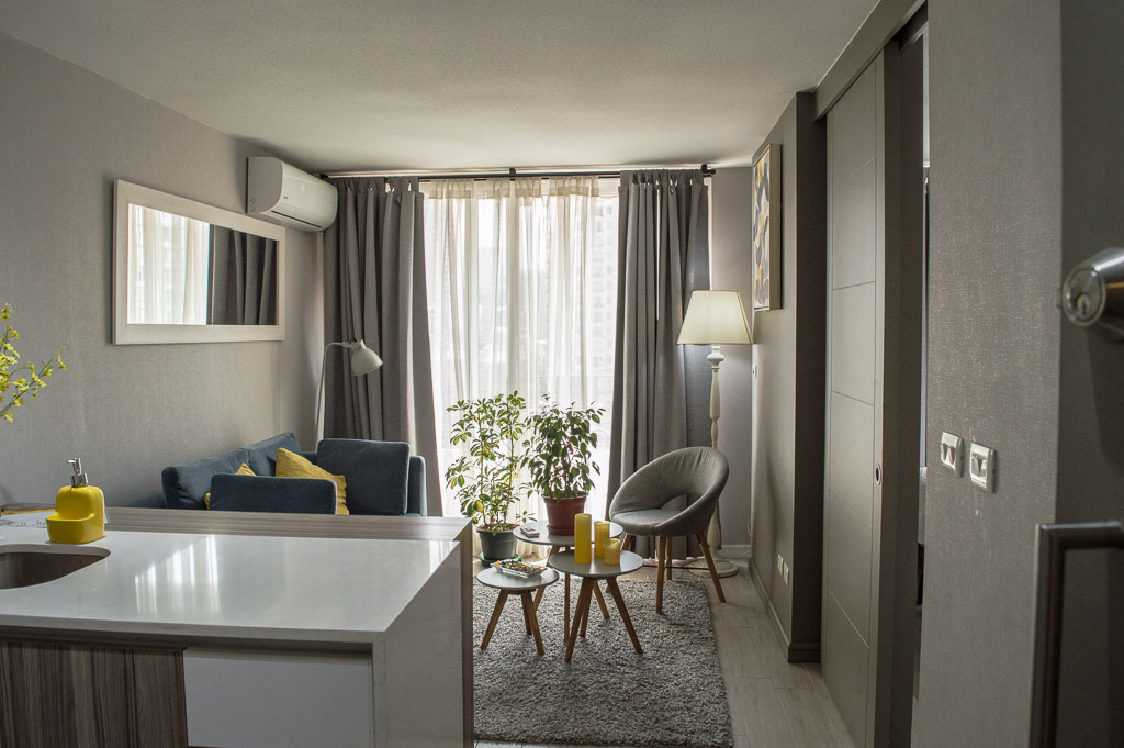 Apartamento mobiliado de 1 dormitório localizado a 2 minutos caminhando da parada de ônibus e a 10 minutos caminhando da Estação de Metrô Santa Lucía.O apartamento tem living, sala de jantar, cozinha (aberta), 1 banheiro, varanda e 1 estacionamento (opcional, por um valor adicional de $ 70USD). O quarto 1 tem cama de casal, walk-in clóset, 2 mesas de cabeceira, TV e banheiro privado. O lugar mede 36m² + 3m² de terraço aproximadamente. O custo dos serviços de condomínio, água quente, água fria, eletricidade e internet deve ser pago antecipadamente com o aluguel mensal, com um limite de consumo de $ 145USD. O imóvel tem lavanderia cujo valor é $ 1USD aproximadamente por carga de roupa (lavagem e secagem). Você deve pagar depósito de segurança, que será devolvido no final do período de locação; Também deve pagar $ 23USD ao momento de devolver o imóvel para a limpeza do lugar. Próximo ao imóvel está a Biblioteca Nacional, Teatro Municipal de Santiago, Art Cinema, feiras de artesanato, centros culturais e do Cerro Santa Lucia, principal foco de turismo e passeios dominical pelas atrações que apresenta, como; fontes de água, terraços e varandas, onde pode desfrutar de uma privilegiada vista de Santiago.