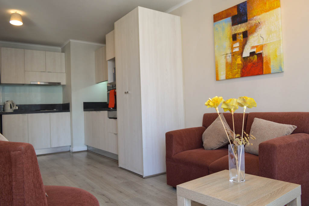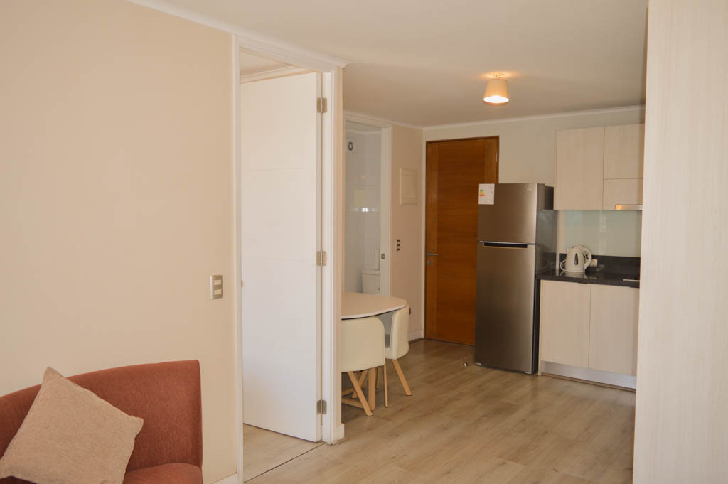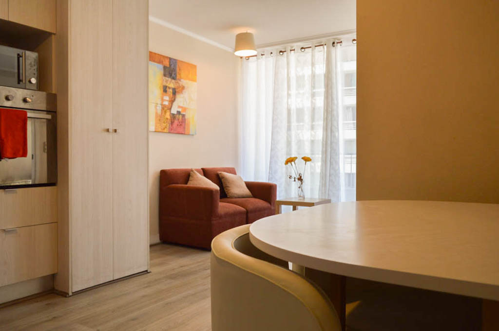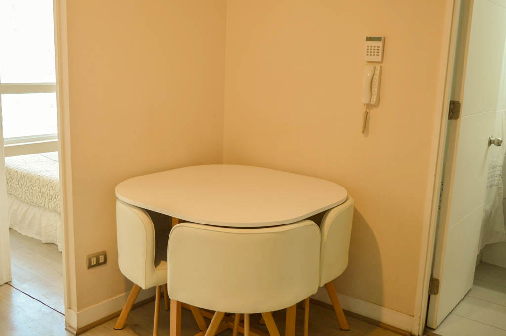 Apartamento mobiliado de 1 dormitório localizado a 3 minutos caminhando da parada de ônibus e a 5 minutos caminhando da Estação de Metrô Universidad de Chile.O apartamento tem living, sala de jantar, cozinha (aberta), 1 banheiro e varanda. O quarto 1 tem cama de casal, closet, cômoda e TV. O lugar mede 40m² + 4m² de terraço aproximadamente O custo dos serviços de condomínio, água quente, água fria e eletricidade deve ser pago antecipadamente com o aluguel mensal, com um limite de consumo de $ 96USD. O imóvel tem lavanderia cujo valor é $ 1USD aproximadamente por carga de roupa (lavagem e secagem). Você deve pagar depósito de segurança, que será devolvido no final do período de locação; Também deve pagar $ 34USD ao momento de devolver o imóvel para a limpeza do lugar. Próximo ao imóvel está a Biblioteca Nacional, Teatro Municipal de Santiago, Art Cinema, feiras de artesanato, centros culturais e do Cerro Santa Lucia, principal foco de turismo e passeios dominical pelas atrações que apresenta, como; fontes de água, terraços e varandas, onde pode desfrutar de uma privilegiada vista de Santiago.
