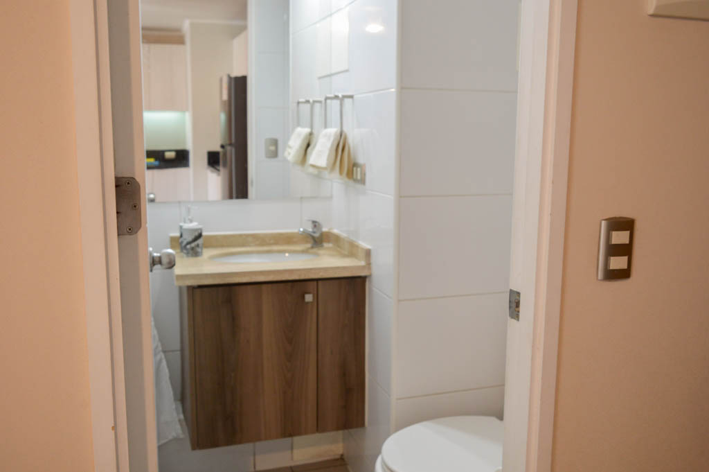 Apartamento mobiliado de 1 dormitório localizado a 3 minutos caminhando da parada de ônibus e a 5 minutos caminhando da Estação de Metrô Universidad de Chile.O apartamento tem living, sala de jantar, cozinha (aberta), 1 banheiro e varanda. O quarto 1 tem cama de casal, closet, cômoda e TV. O lugar mede 40m² + 4m² de terraço aproximadamente O custo dos serviços de condomínio, água quente, água fria e eletricidade deve ser pago antecipadamente com o aluguel mensal, com um limite de consumo de $ 92USD. O imóvel tem lavanderia cujo valor é $ 1USD aproximadamente por carga de roupa (lavagem e secagem). Você deve pagar depósito de segurança, que será devolvido no final do período de locação; Também deve pagar $ 32USD ao momento de devolver o imóvel para a limpeza do lugar. Próximo ao imóvel está a Biblioteca Nacional, Teatro Municipal de Santiago, Art Cinema, feiras de artesanato, centros culturais e do Cerro Santa Lucia, principal foco de turismo e passeios dominical pelas atrações que apresenta, como; fontes de água, terraços e varandas, onde pode desfrutar de uma privilegiada vista de Santiago.