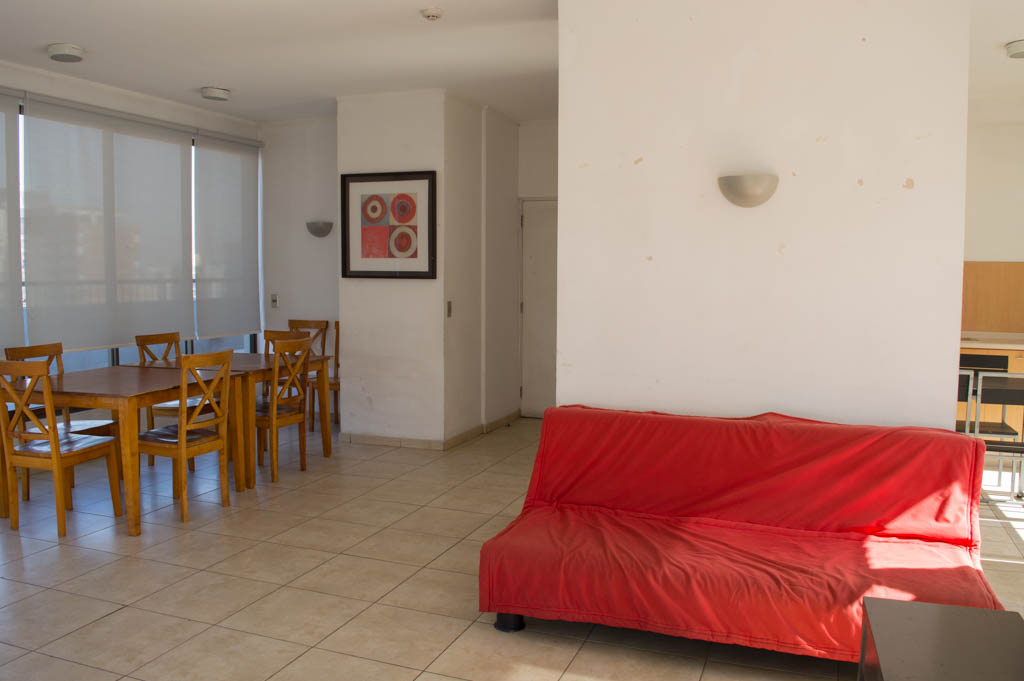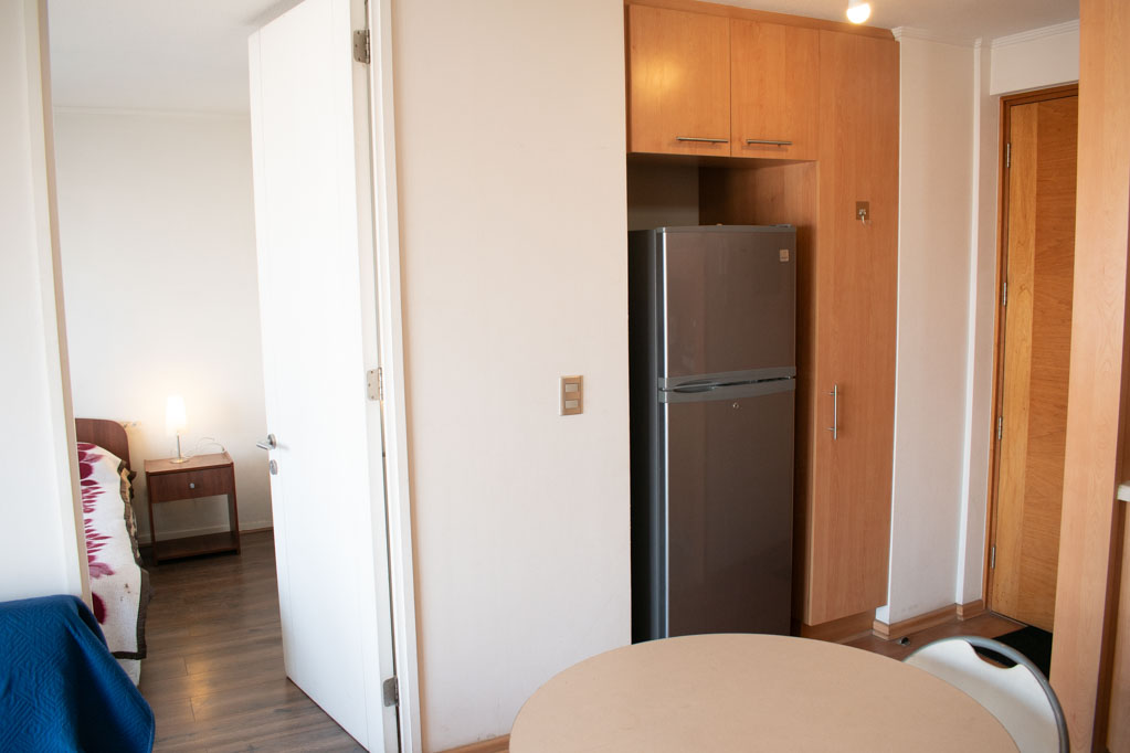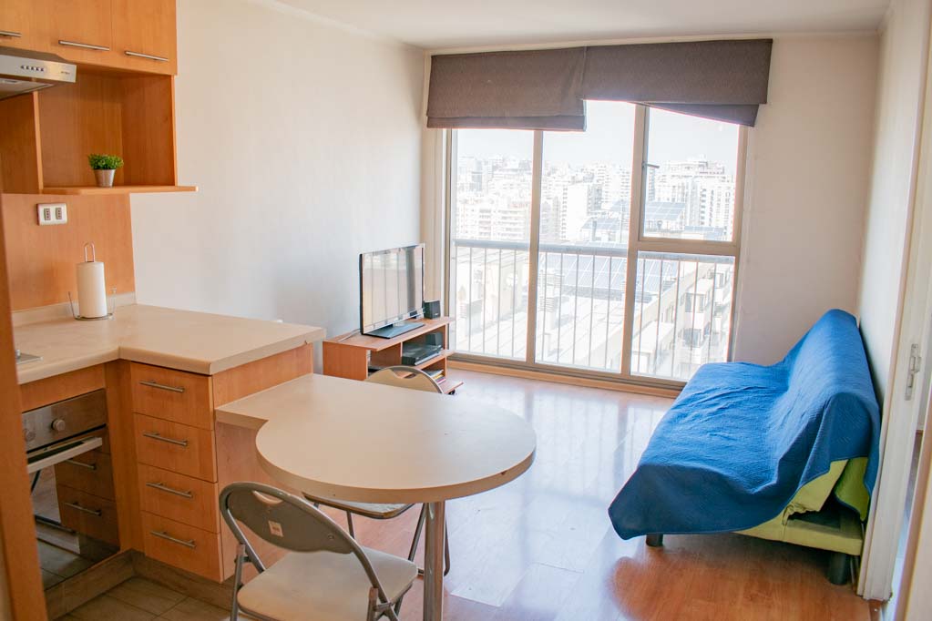 Apartamento mobiliado de 1 dormitório localizado a 1 minuto caminhando da parada de ônibus e a 4 minutos caminhando da Estação de Metrô Santa Lucía.O apartamento tem living, sala de jantar, cozinha (aberta) e 1 banheiro. O quarto 1 tem cama de casal, closet, 2 mesas de cabeceira e banheiro privado. O lugar mede aproximadamente 35m². O custo dos serviços de condomínio, água quente, água fria e eletricidade deve ser pago antecipadamente com o aluguel mensal, com um limite de consumo de $ 99USD. O imóvel tem lavanderia cujo valor é $ 2USD aproximadamente por carga de roupa (lavagem e secagem). Você deve pagar depósito de segurança, que será devolvido no final do período de locação; Também deve pagar $ 35USD ao momento de devolver o imóvel para a limpeza do lugar. Próximo ao imóvel está a Biblioteca Nacional, Teatro Municipal de Santiago, Art Cinema, feiras de artesanato, centros culturais e do Cerro Santa Lucia, principal foco de turismo e passeios dominical pelas atrações que apresenta, como; fontes de água, terraços e varandas, onde pode desfrutar de uma privilegiada vista de Santiago.