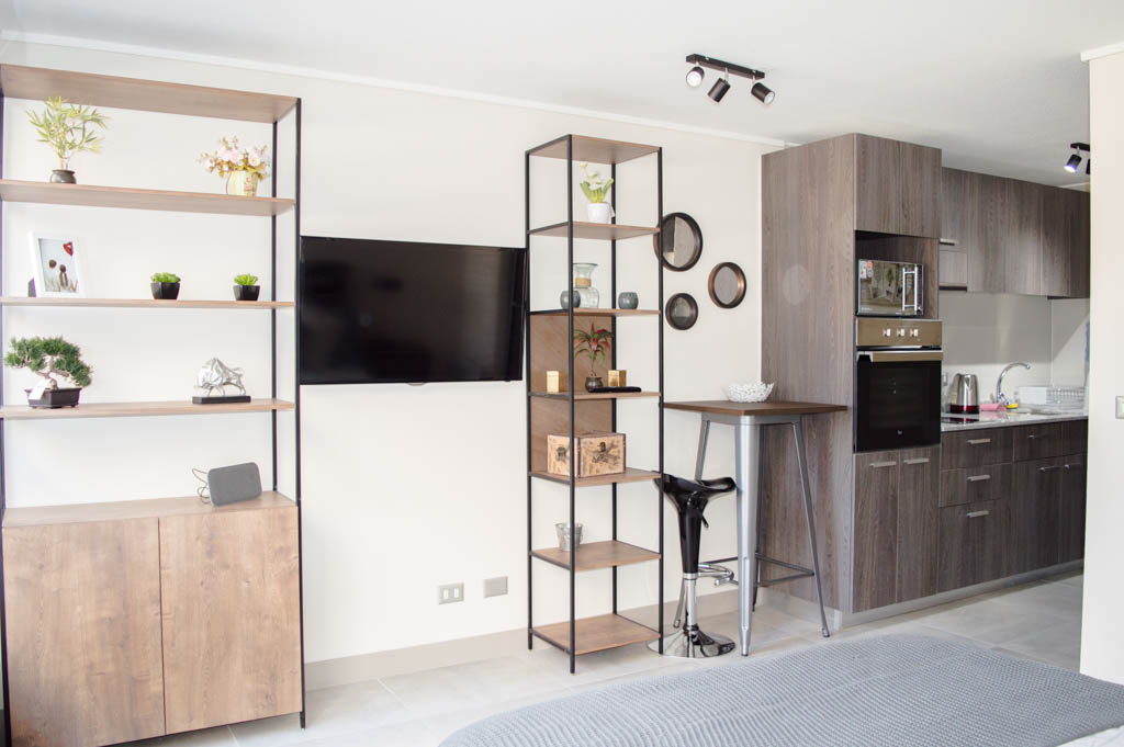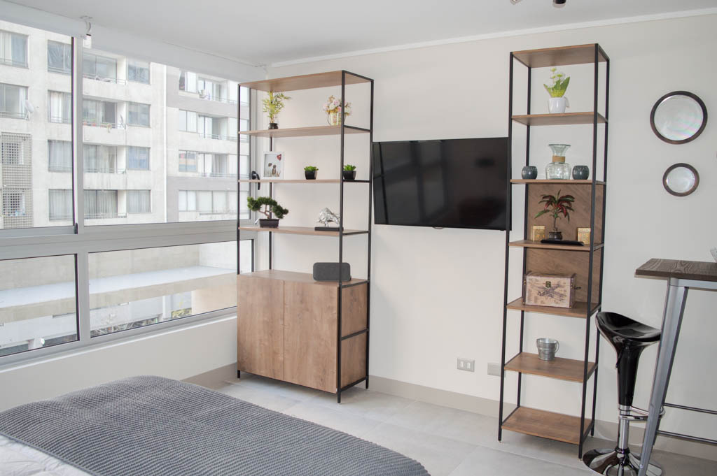 Apartamento mobiliado de um estudio localizado a 2 minutos caminhando da parada de ônibus e a 8 minutos caminhando da Estação de Metrô Santa Ana.O apartamento tem sala de jantar, cozinha (aberta) e 1 banheiro. O quarto 1 tem cama de casal, closet, 2 mesas de cabeceira, TV e banheiro privado. O lugar mede aproximadamente 28m². O custo dos serviços de condomínio, água quente, água fria, eletricidade e internet deve ser pago antecipadamente com o aluguel mensal, com um limite de consumo de $ 104USD. O imóvel tem lavanderia cujo valor é $ 1USD aproximadamente por carga de roupa (lavagem e secagem). Você deve pagar depósito de segurança, que será devolvido no final do período de locação; Também deve pagar $ 55USD ao momento de devolver o imóvel para a limpeza do lugar. Próximo ao imóvel está os simbólicos Liceo 1 Javiera Carrera e Liceo Aplicación, bem como a Igreja Paroquial de Santa Ana, um monumento nacional. A passos você pode encontrar a Plaza de Armas em Santiago, uma parte importante do centro histórico de Santiago, famosa por sua arquitetura e infra-estrutura, tais como Correio de Santiago, Catedral de Santiago, a Câmara Municipal e a Casa Colorada.