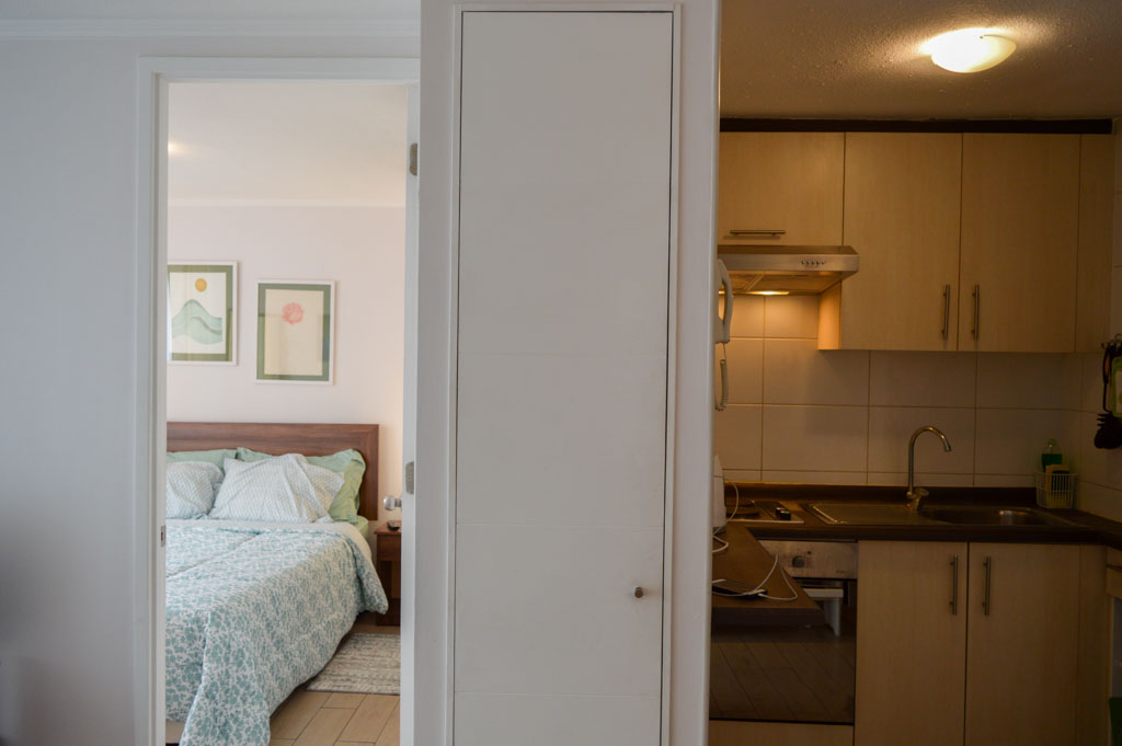 Apartamento mobiliado de 1 dormitório localizado a 3 minutos caminhando da parada de ônibus e a 10 minutos caminhando da Estação de Metrô Santa Lucía.O apartamento tem living, sala de jantar, cozinha (aberta), 1 banheiro e varanda. O quarto 1 tem cama de casal, 2 closets, 2 mesas de cabeceira, TV e banheiro privado. O lugar mede 30m² + 2m² de terraço aproximadamente O custo dos serviços de internet e TV a cabo deve ser pago antecipadamente com o aluguel mensal, com um limite de consumo de $ 46USD. Além disso, deve ser considerado, o pagamento das despesas de serviços de condomínio, água quente, água fria e eletricidade que somam $ 75USD aproximadamente. O imóvel tem lavanderia cujo valor é $ 2USD aproximadamente por carga de roupa (lavagem e secagem). Você deve pagar depósito de segurança, que será devolvido no final do período de locação; Também deve pagar $ 17USD ao momento de devolver o imóvel para a limpeza do lugar. Próximo ao imóvel está a Biblioteca Nacional, Teatro Municipal de Santiago, Art Cinema, feiras de artesanato, centros culturais e do Cerro Santa Lucia, principal foco de turismo e passeios dominical pelas atrações que apresenta, como; fontes de água, terraços e varandas, onde pode desfrutar de uma privilegiada vista de Santiago.