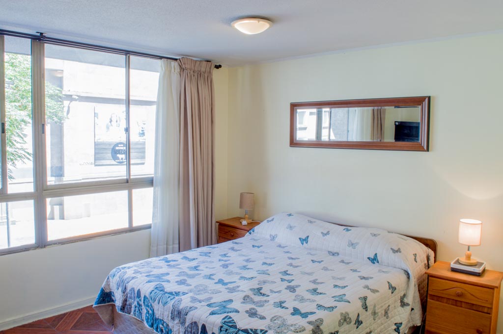 Apartamento mobiliado de um estudio localizado a 1 minuto caminhando da parada de ônibus e a 4 minutos caminhando da Estação de Metrô Santa Ana.O apartamento tem sala de jantar, cozinha (aberta) e 1 banheiro. O quarto 1 tem cama de casal, closet, 2 mesas de cabeceira, 3 cadeiras e banheiro privado. O lugar mede aproximadamente 23m². O custo dos serviços de condomínio, água quente, água fria, eletricidade, internet e TV a cabo deve ser pago antecipadamente com o aluguel mensal, com um limite de consumo de $ 111USD. O imóvel tem lavanderia cujo valor é $ 1USD aproximadamente por carga de roupa (lavagem e secagem). Você deve pagar depósito de segurança, que será devolvido no final do período de locação; Também deve pagar $ 11USD ao momento de devolver o imóvel para a limpeza do lugar. Próximo ao imóvel está os simbólicos Liceo 1 Javiera Carrera e Liceo Aplicación, bem como a Igreja Paroquial de Santa Ana, um monumento nacional. A passos você pode encontrar a Plaza de Armas em Santiago, uma parte importante do centro histórico de Santiago, famosa por sua arquitetura e infra-estrutura, tais como Correio de Santiago, Catedral de Santiago, a Câmara Municipal e a Casa Colorada.