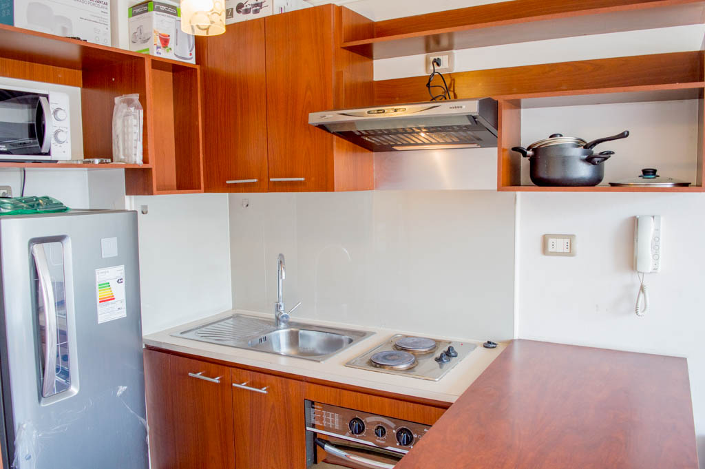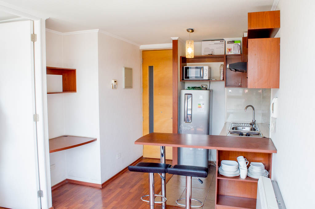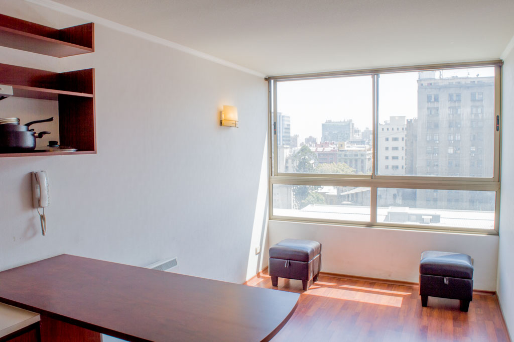 Apartamento mobiliado de 1 dormitório localizado a 1 minuto caminhando da parada de ônibus e a 4 minutos caminhando da Estação de Metrô La Moneda.O apartamento tem living, sala de jantar, cozinha (aberta) e 1 banheiro. O quarto 1 tem cama de casal, closet, 2 mesas de cabeceira e banheiro privado. O lugar mede aproximadamente 30m². Deve ser considerado, o pagamento das despesas de serviços de condomínio, água quente, água fria e eletricidade que somam $ 114USD aproximadamente. O imóvel tem lavanderia cujo valor é $ 2USD aproximadamente por carga de roupa (lavagem e secagem). Você deve pagar depósito de segurança, que será devolvido no final do período de locação; Também deve pagar $ 34USD ao momento de devolver o imóvel para a limpeza do lugar. Próximo ao imóvel está a Avenida Bernardo O'Higgins (mais conhecida como Alameda), o Palácio de La Moneda e a Plaza de la Constitución, entre outros edifícios de valor histórico e arquitetônico. Você também pode encontrar vários restaurantes, bares, bancos e entidades governamentais.