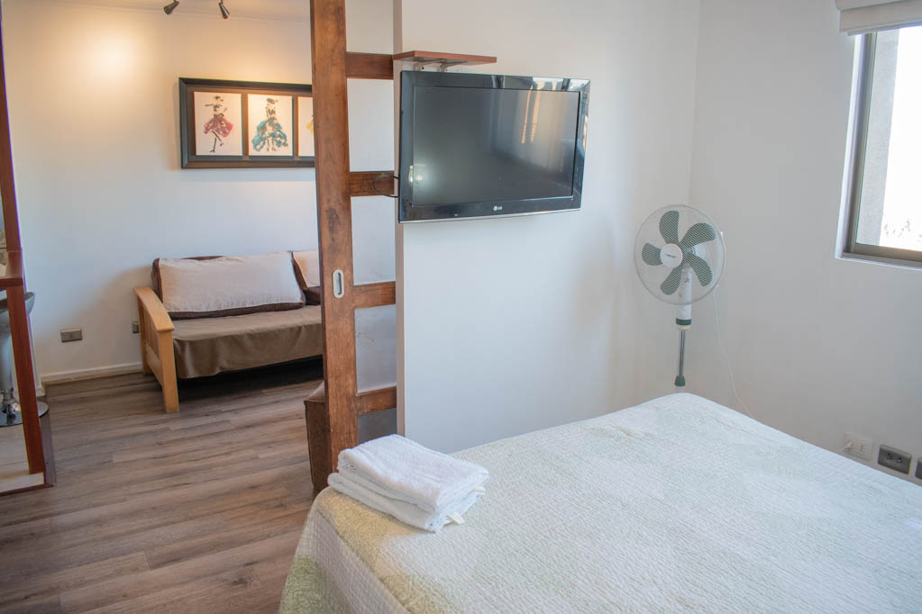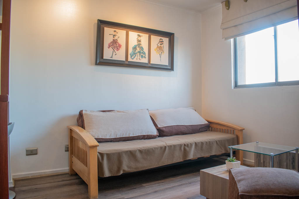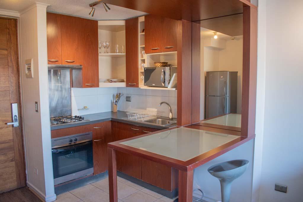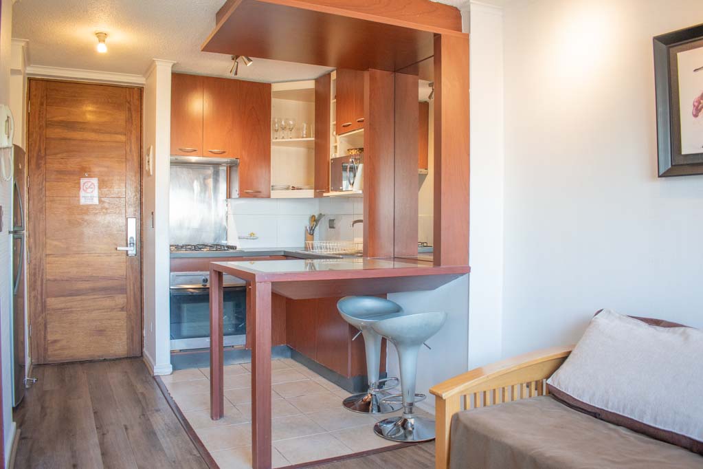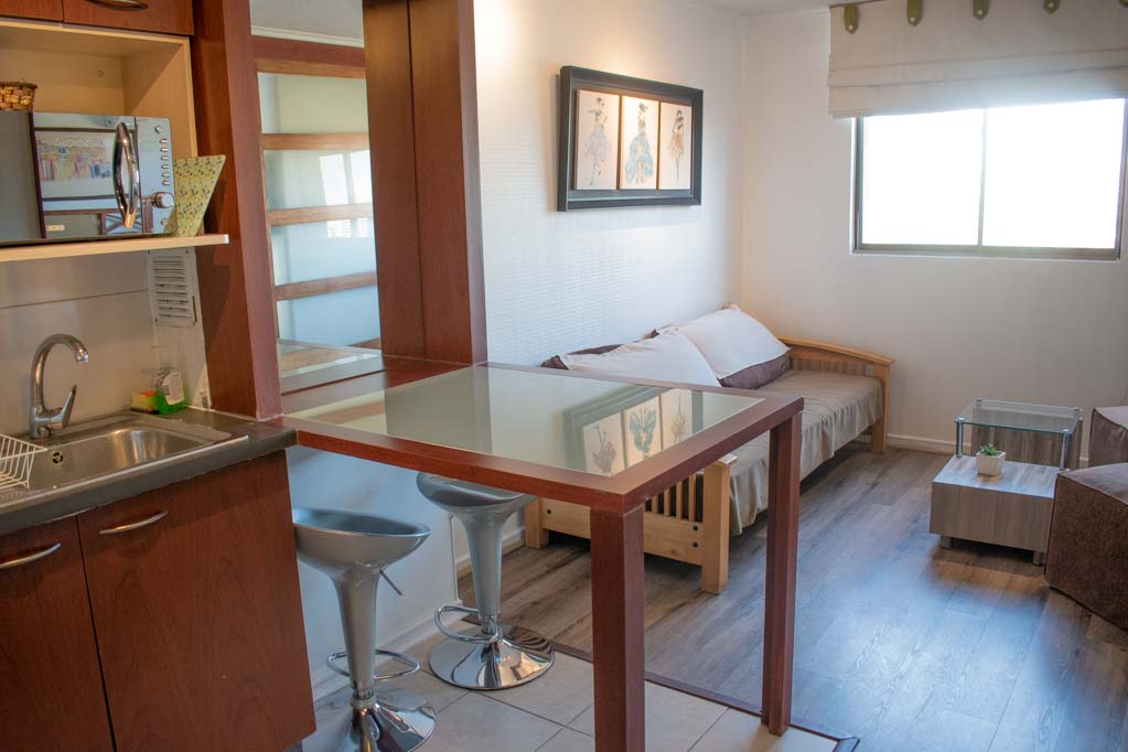 Apartamento mobiliado de 1 dormitório localizado a 2 minutos caminhando da parada de ônibus e a 4 minutos caminhando da Estação de Metrô Bellas Artes.O apartamento tem living, sala de jantar, cozinha (aberta) e 1 banheiro. O quarto 1 tem cama de casal, closet, 2 mesas de cabeceira, TV e banheiro privado. O lugar mede aproximadamente 35m². O custo dos serviços de condomínio, água quente, água fria, eletricidade, gás, internet e TV a cabo deve ser pago antecipadamente com o aluguel mensal, com um limite de consumo de $ 185USD. O imóvel tem lavanderia cujo valor é $ 2USD aproximadamente por carga de roupa (lavagem e secagem). Você deve pagar depósito de segurança, que será devolvido no final do período de locação; Também deve pagar $ 35USD ao momento de devolver o imóvel para a limpeza do lugar. Próximo ao imóvel está o Barrio Lastarria e Barrio Bellas Artes (bairros históricos - culturais), caracterizados por suas mansões do século XIX restauradas e utilizadas como restaurantes, cafés, bibliotecas, centros culturais, entre outros. A poucos passos de distância você pode encontrar o Museu Nacional de Belas Artes, onde é preservada a arte nacional e internacional mais valiosa e o Parque Florestal, local ideal para compartilhar com os amigos, praticar esportes e caminhar.