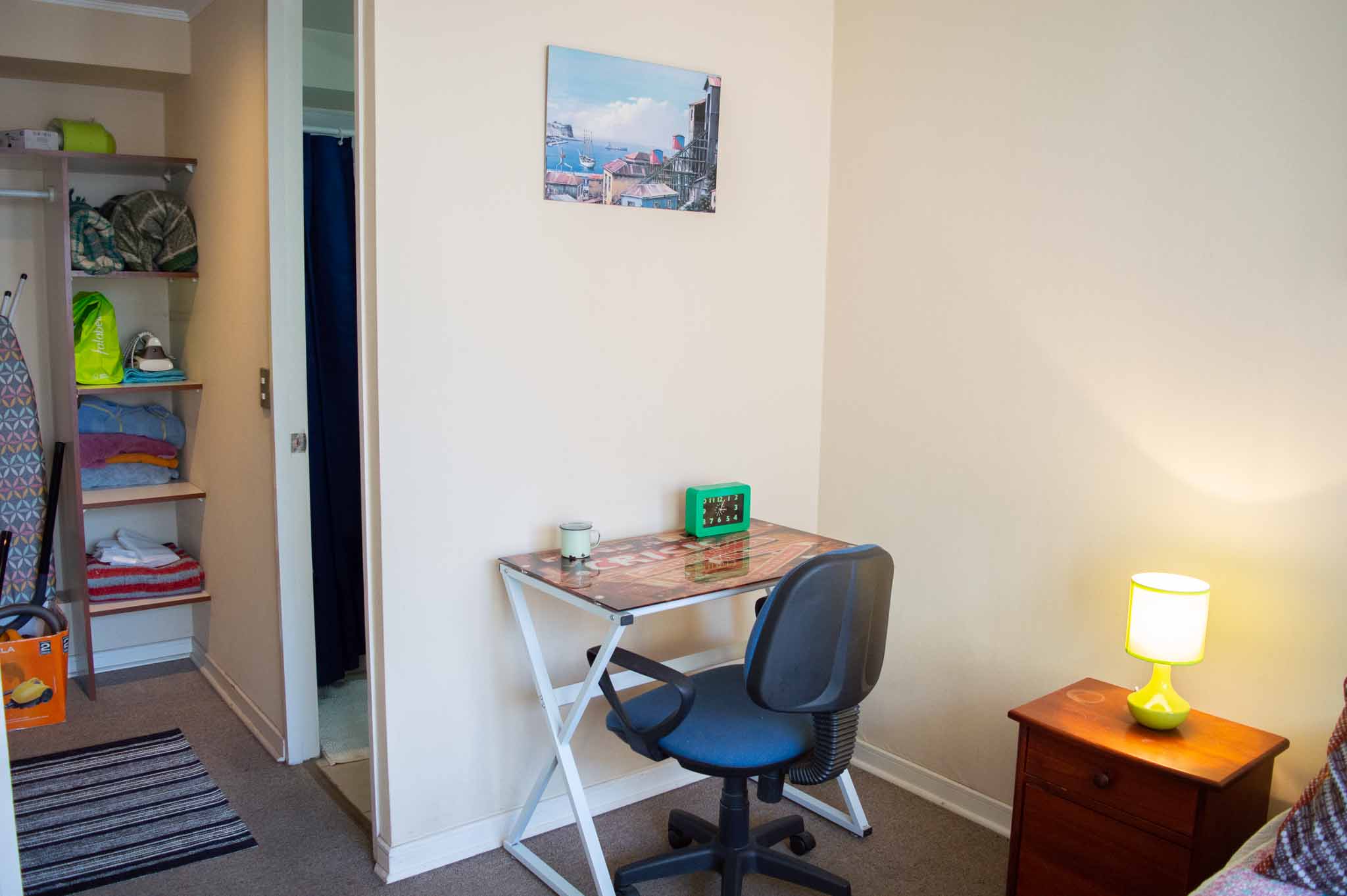 Apartamento mobiliado de 1 dormitório localizado a 2 minutos caminhando da parada de ônibus e a 5 minutos caminhando da Estação de Metrô Santa Lucía.O apartamento tem living, sala de jantar, cozinha (aberta), 1 banheiro e varanda. O quarto 1 tem cama de casal, walk-in clóset, mesa de cabeceira, escrivaninha, cadeira e banheiro privado. O lugar mede 40m² + 2m² de terraço aproximadamente Deve ser considerado, o pagamento das despesas de serviços de condomínio, água quente, água fria e eletricidade que somam $ 105USD aproximadamente. O imóvel tem lavanderia cujo valor é $ 1USD aproximadamente por carga de roupa (lavagem e secagem). Você deve pagar depósito de segurança, que será devolvido no final do período de locação; Também deve pagar $ 39USD ao momento de devolver o imóvel para a limpeza do lugar. Próximo ao imóvel está a Biblioteca Nacional, Teatro Municipal de Santiago, Art Cinema, feiras de artesanato, centros culturais e do Cerro Santa Lucia, principal foco de turismo e passeios dominical pelas atrações que apresenta, como; fontes de água, terraços e varandas, onde pode desfrutar de uma privilegiada vista de Santiago.