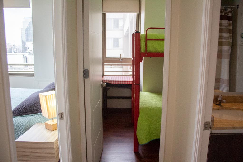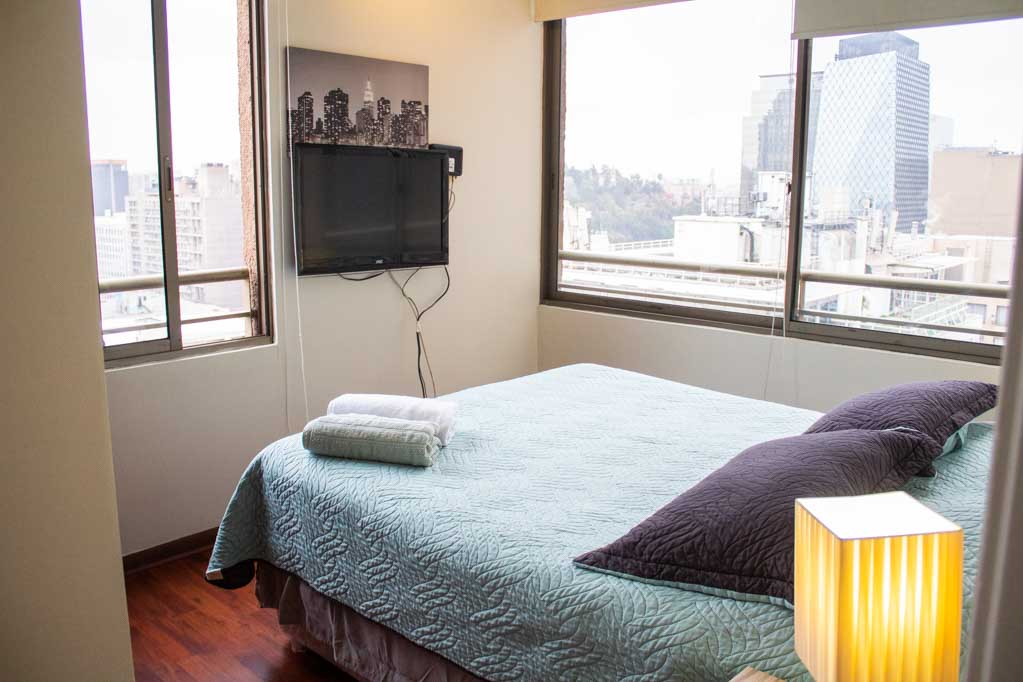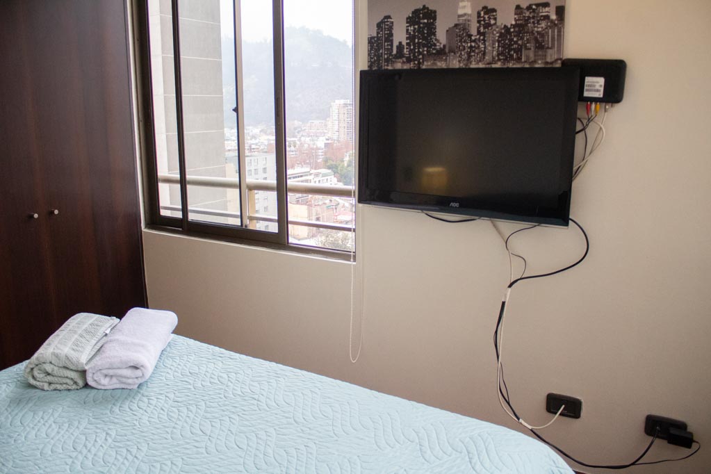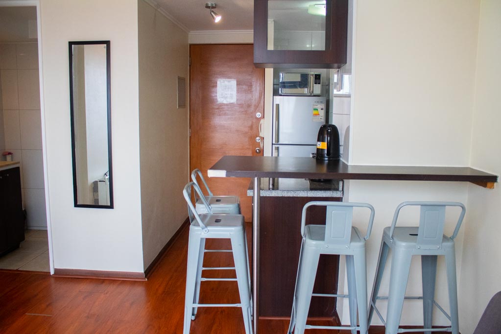 Apartamento mobiliado de 2 dormitórios localizado a 4 minutos caminhando da parada de ônibus e a 4 minutos caminhando da Estação de Metrô Bellas Artes.O apartamento tem living, sala de jantar, cozinha (aberta) e 1 banheiro. O quarto 1 tem cama de casal, closet, 2 mesas de cabeceira e TV. O quarto 2 tem beliche e closet. O lugar mede aproximadamente 40m². O custo dos serviços de condomínio, água quente, água fria, eletricidade e internet deve ser pago antecipadamente com o aluguel mensal, com um limite de consumo de $ 167USD. O imóvel tem lavanderia cujo valor é $ 2USD aproximadamente por carga de roupa (lavagem e secagem). Você deve pagar depósito de segurança, que será devolvido no final do período de locação; Também deve pagar $ 33USD ao momento de devolver o imóvel para a limpeza do lugar. Próximo ao imóvel está o Barrio Lastarria e Barrio Bellas Artes (bairros históricos - culturais), caracterizados por suas mansões do século XIX restauradas e utilizadas como restaurantes, cafés, bibliotecas, centros culturais, entre outros. A poucos passos de distância você pode encontrar o Museu Nacional de Belas Artes, onde é preservada a arte nacional e internacional mais valiosa e o Parque Florestal, local ideal para compartilhar com os amigos, praticar esportes e caminhar.