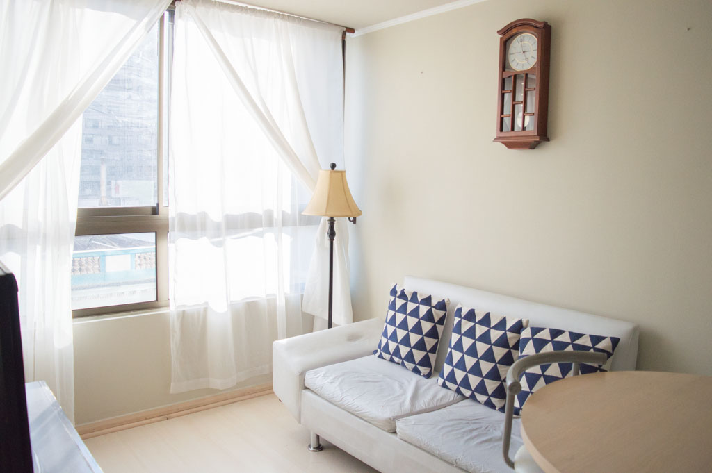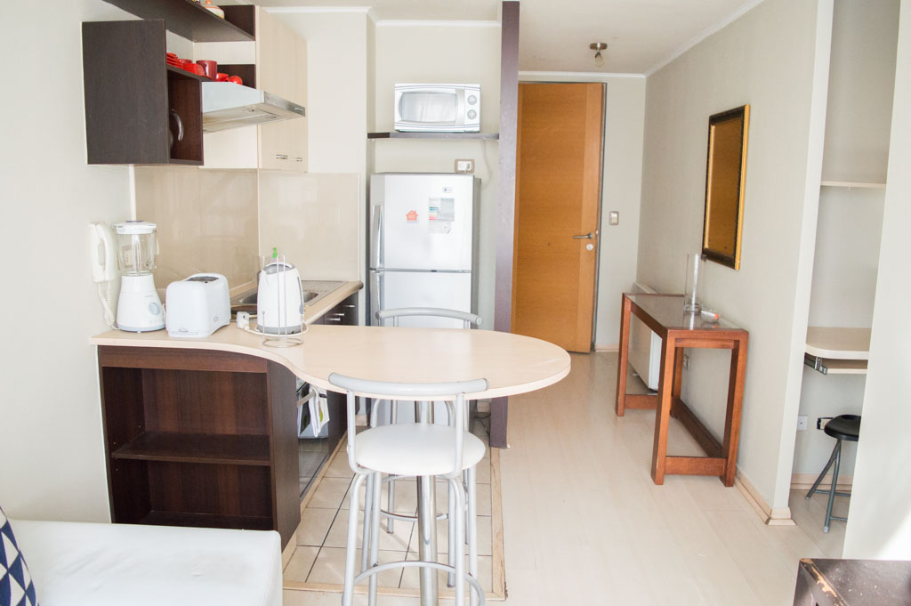 Apartamento mobiliado de 2 dormitórios localizado a 2 minutos caminhando da parada de ônibus e a 5 minutos caminhando da Estação de Metrô Santa Lucía.O apartamento tem living, sala de jantar, cozinha (aberta) e 1 banheiro. O quarto 1 tem cama de casal, closet e 2 mesas de cabeceira. O quarto 2 tem beliche e closet. O lugar mede aproximadamente 40m². O custo dos serviços de condomínio, água quente, água fria e eletricidade deve ser pago antecipadamente com o aluguel mensal, com um limite de consumo de $ 166USD. O imóvel tem lavanderia cujo valor é $ 2USD aproximadamente por carga de roupa (lavagem e secagem). Você deve pagar depósito de segurança, que será devolvido no final do período de locação; Também deve pagar $ 80USD ao momento de devolver o imóvel para a limpeza do lugar. Próximo ao imóvel está a Biblioteca Nacional, Teatro Municipal de Santiago, Art Cinema, feiras de artesanato, centros culturais e do Cerro Santa Lucia, principal foco de turismo e passeios dominical pelas atrações que apresenta, como; fontes de água, terraços e varandas, onde pode desfrutar de uma privilegiada vista de Santiago.