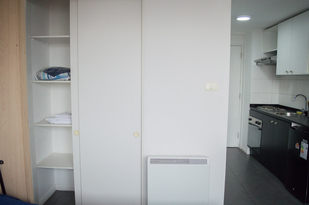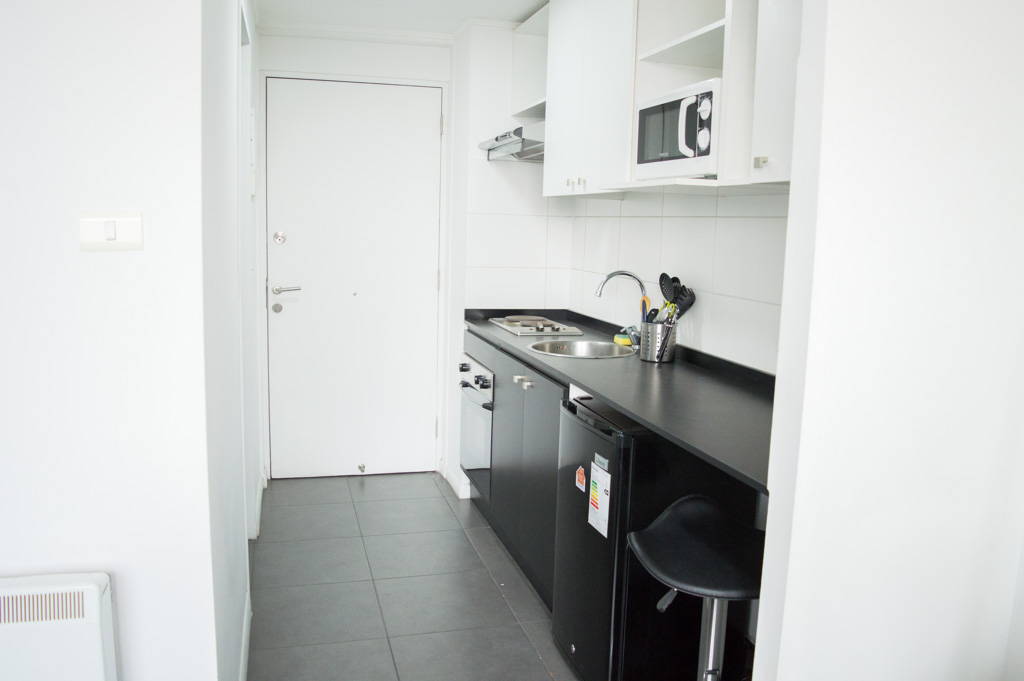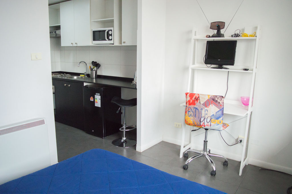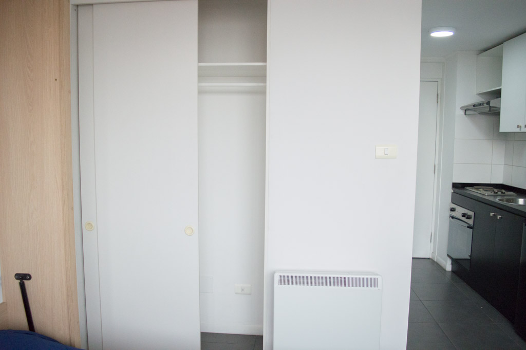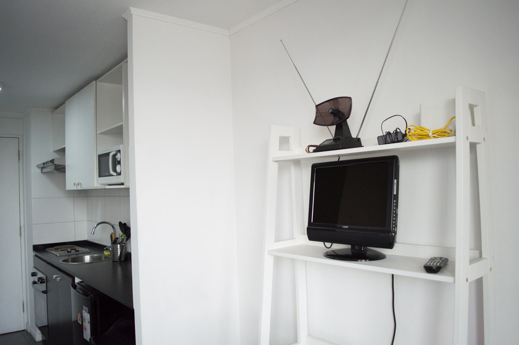 Apartamento de um estudio, com orientação norte, localizado a 3 minutos caminhando da parada de ônibus e a 12 minutos caminhando da Estação de Metrô Universidad de Chile.Caracteristicas gerais: