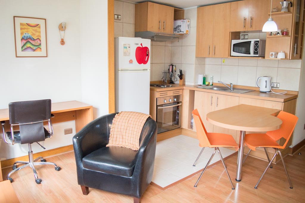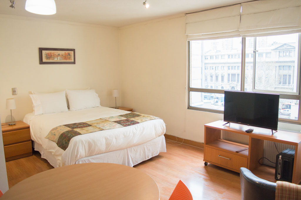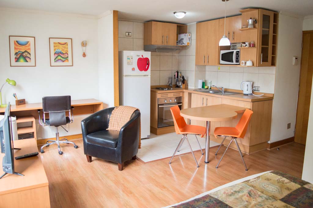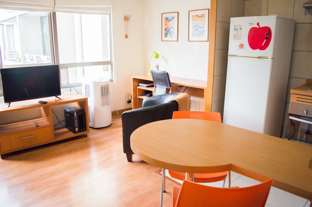 Apartamento de um estudio, com orientação sul, localizado a 2 minutos caminhando da parada de ônibus e a 2 minutos caminhando da Estação de Metrô Universidad Católica.Caracteristicas gerais: