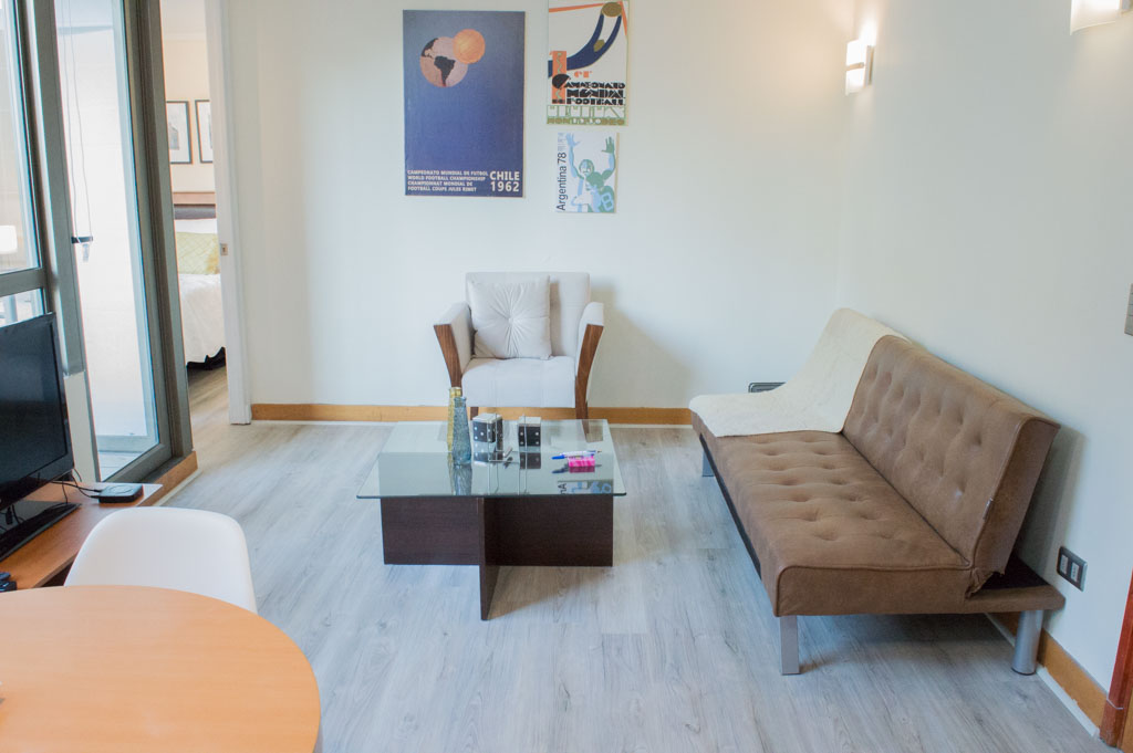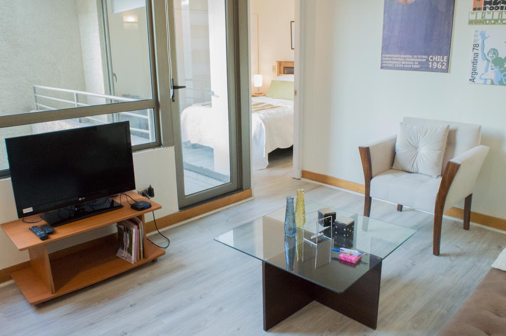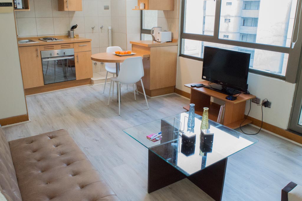 Apartamento mobiliado de 1 dormitório localizado a 2 minutos caminhando da parada de ônibus e a 2 minutos caminhando da Estação de Metrô Universidad Católica.O apartamento tem living, sala de jantar, cozinha (aberta), 1 banheiro e varanda. O quarto 1 tem cama de casal, closet, 2 mesas de cabeceira e banheiro privado. O lugar mede 35m² + 2m² de terraço aproximadamente. O custo dos serviços de condomínio, água quente, água fria, eletricidade e internet deve ser pago antecipadamente com o aluguel mensal, com um limite de consumo de $ 147USD. O imóvel tem lavanderia cujo valor é $ 1USD aproximadamente por carga de roupa (lavagem e secagem). Você deve pagar depósito de segurança, que será devolvido no final do período de locação; Também deve pagar $ 39USD ao momento de devolver o imóvel para a limpeza do lugar. Próximo ao imóvel está a Faculdade de Arquitectura da Universidade do Chile e da Casa Central da Universidade Católica. Na Avenida Bernardo O'Higgins em (mais conhecida como Alameda), você pode encontrar uma variedade de lojas, bancos, cinemas, restaurantes e transportes públicos. Nas proximidades, você também pode desfrutar do Barrio Lastarria conhecida por seus bares, cafés, restaurantes e centros culturais, como GAM.