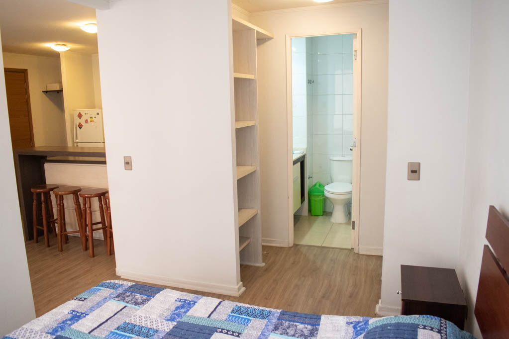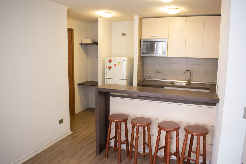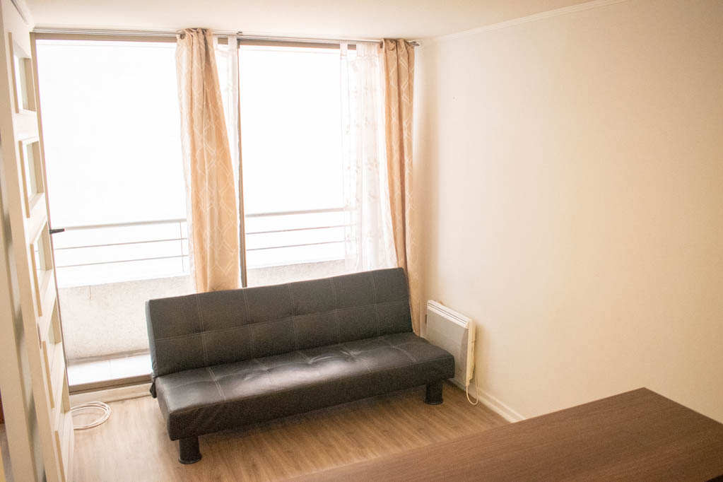 Apartamento mobiliado de 1 dormitório localizado a 2 minutos caminhando da parada de ônibus e a 6 minutos caminhando da Estação de Metrô Santa Lucía.O apartamento tem living, sala de jantar, cozinha (aberta), 1 banheiro e varanda. O quarto 1 tem cama de casal, cômoda, 2 mesas de cabeceira, TV e banheiro privado. O lugar mede 33m² + 3m² de terraço aproximadamente O custo dos serviços de condomínio, água quente, água fria e eletricidade deve ser pago antecipadamente com o aluguel mensal, com um limite de consumo de $ 122USD. O imóvel tem lavanderia cujo valor é $ 2USD aproximadamente por carga de roupa (lavagem e secagem). Você deve pagar depósito de segurança, que será devolvido no final do período de locação; Também deve pagar $ 56USD ao momento de devolver o imóvel para a limpeza do lugar. Próximo ao imóvel está a Biblioteca Nacional, Teatro Municipal de Santiago, Art Cinema, feiras de artesanato, centros culturais e do Cerro Santa Lucia, principal foco de turismo e passeios dominical pelas atrações que apresenta, como; fontes de água, terraços e varandas, onde pode desfrutar de uma privilegiada vista de Santiago.
