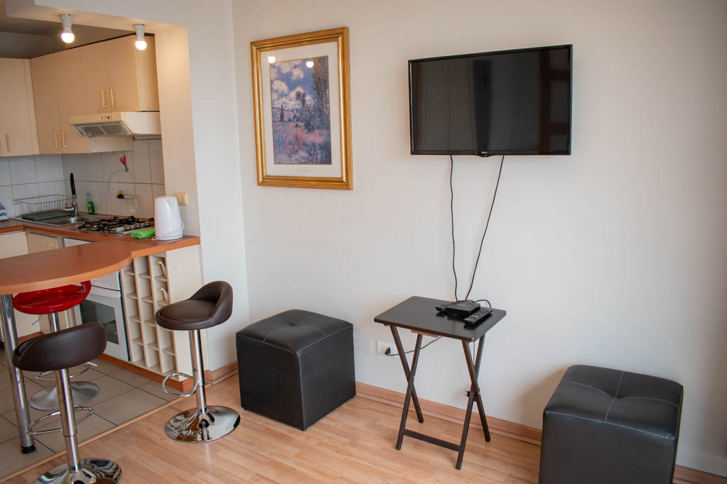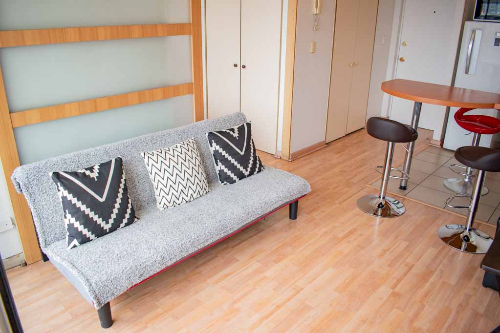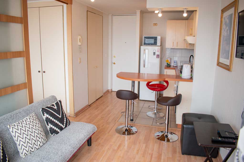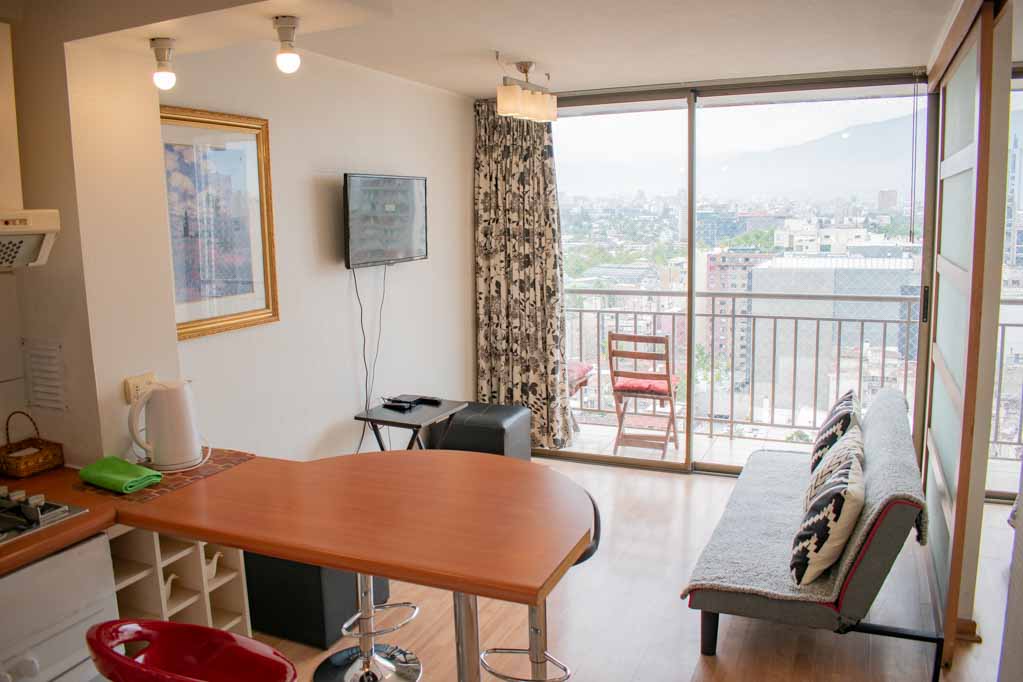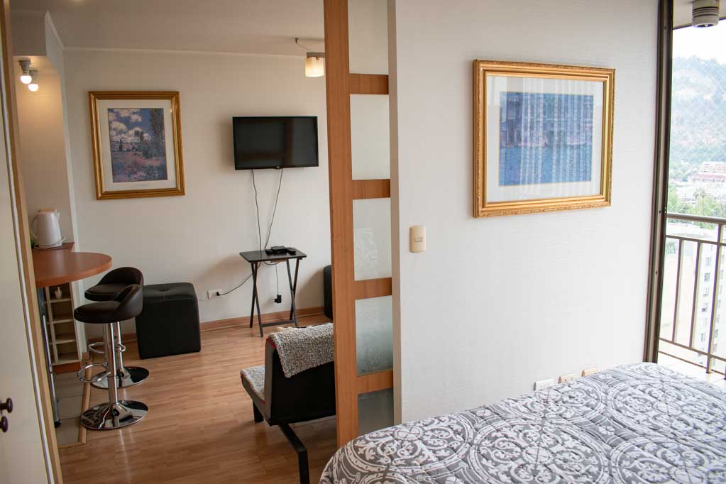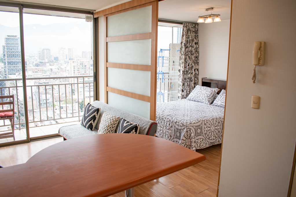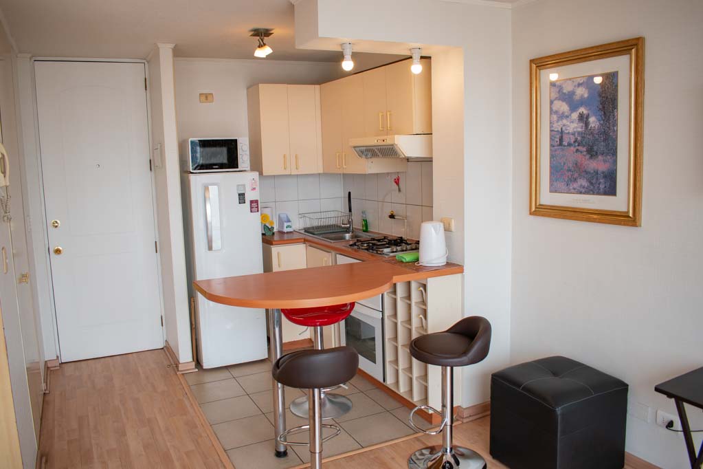 Apartamento mobiliado de 1 dormitório localizado a 1 minuto caminhando da parada de ônibus e a 4 minutos caminhando da Estação de Metrô Bellas Artes.O apartamento tem living, sala de jantar, cozinha (aberta), 1 banheiro e terraço. O quarto 1 tem cama de casal, 2 mesas de cabeceira e banheiro privado. O lugar mede 35m² + 4m² de terraço aproximadamente O custo dos serviços de condomínio, água quente, água fria, eletricidade e gás deve ser pago antecipadamente com o aluguel mensal, com um limite de consumo de $ 121USD. O imóvel tem lavanderia cujo valor é $ 2USD aproximadamente por carga de roupa (lavagem e secagem). Você deve pagar depósito de segurança, que será devolvido no final do período de locação; Também deve pagar $ 33USD ao momento de devolver o imóvel para a limpeza do lugar. Próximo ao imóvel está o Barrio Lastarria e Barrio Bellas Artes (bairros históricos - culturais), caracterizados por suas mansões do século XIX restauradas e utilizadas como restaurantes, cafés, bibliotecas, centros culturais, entre outros. A poucos passos de distância você pode encontrar o Museu Nacional de Belas Artes, onde é preservada a arte nacional e internacional mais valiosa e o Parque Florestal, local ideal para compartilhar com os amigos, praticar esportes e caminhar.