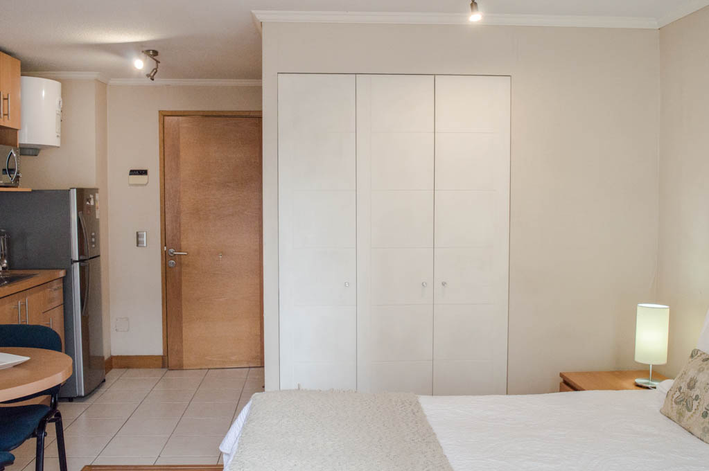 Apartamento de um estudio, com orientação oeste, localizado a 2 minutos caminhando da parada de ônibus e a 2 minutos caminhando da Estação de Metrô Universidad Católica.Caracteristicas gerais: