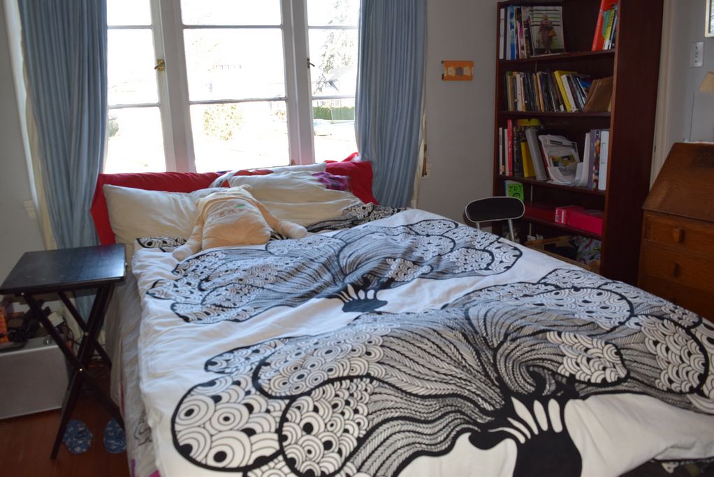 Living here, you would have full access to the living room, bathroom, kitchen, and yard. The bedroom has a queen size bed, nightstand, closet and a dresser.