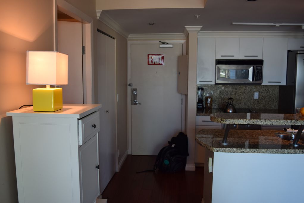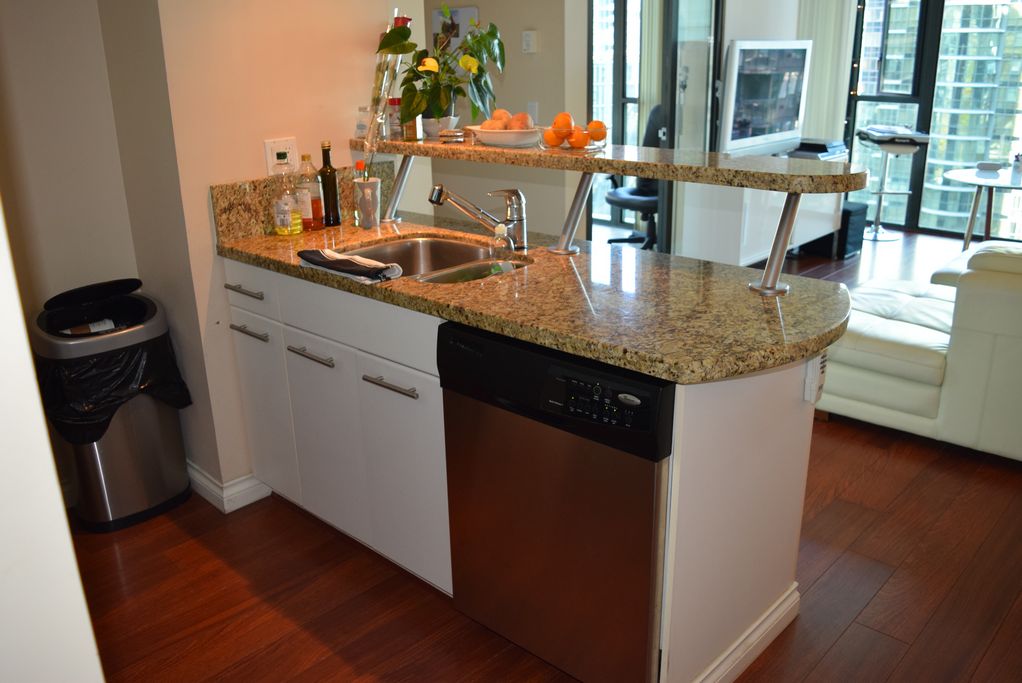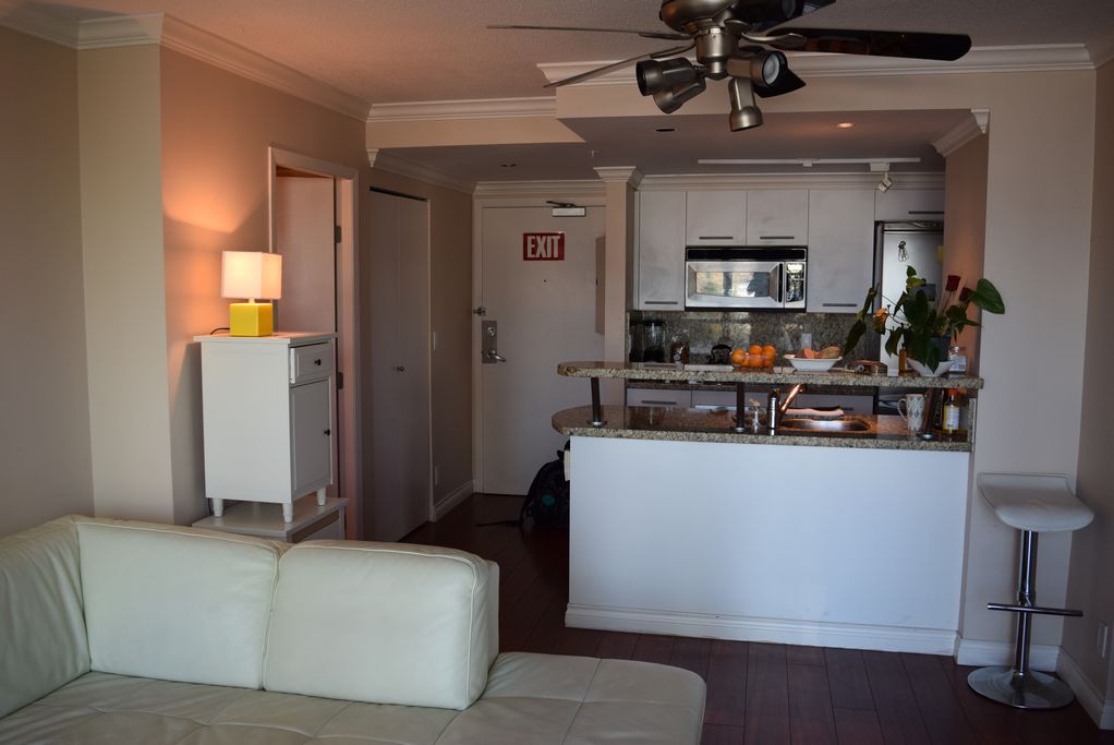 This 1 bedroom and den furnished apartment is located a 2 minute walk from the bus stop, and a 7 minutes' walk from the Burrard Metro station.