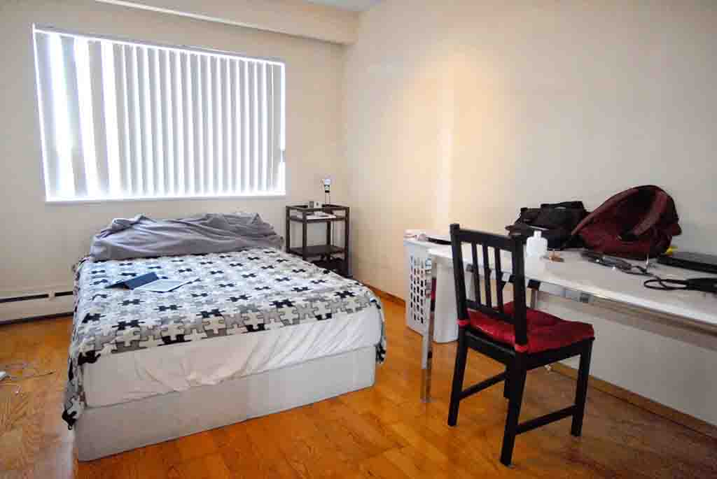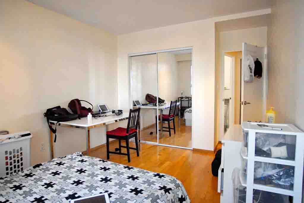 The unit has a shared living room, kitchen, and bathroom in suite. The bedroom 1 has a double size bed, 1 desk, 1 chair, drawers and closet. The space measures 250 ft2 (1200 ft2 of the entire suite) approximately.