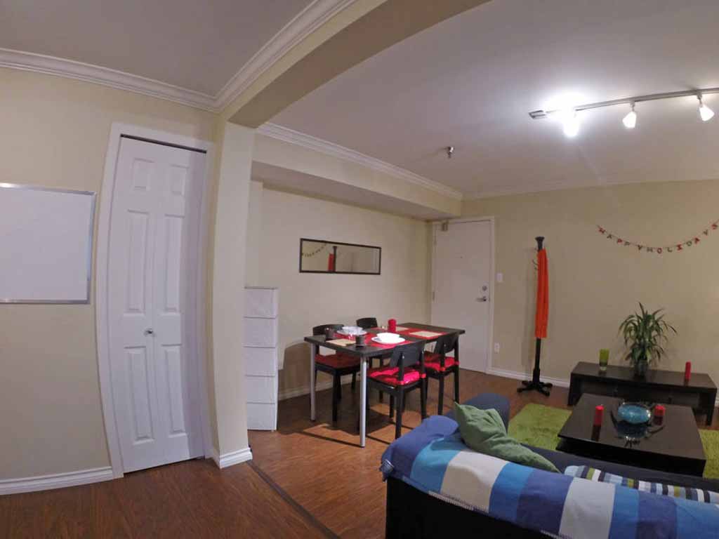 1 bedroom furnished apartment located 2 minutes walk from the bus stop (#14, #9). The apartment has living room, den and separate kitchen. The room has double bed, night table, dresser and closet. The apartment measured 645 sf². A monthly rent must be added the extras (electricity, hot water, cold water) totaling approximately $ 100.- CAD. Warranty must be paid (deposit) which will be refunded after the rental period; also you must pay $ 40.- CAD when returning the apartment for cleaning the place.