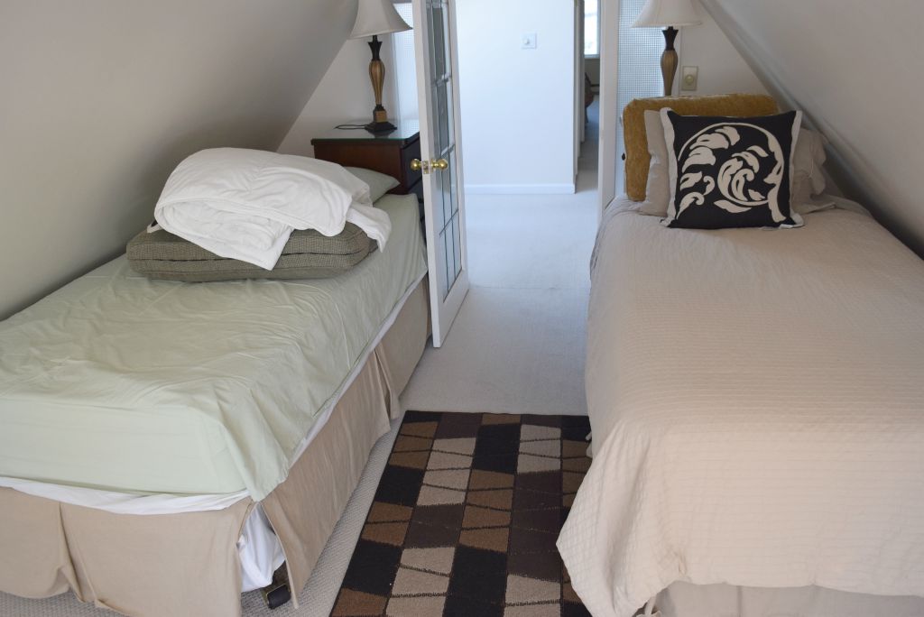 The unit has a living room, kitchen, and bathroom in suite. The bedroom 1 has a queen size bed, nightstand, and closet; the bedroom 2 has 2 twin beds, a dresser, and nightstands; the bedroom 3 has a dresser, nightstands, and a closet. The space measures 1750 ft² + 100 ft² of balcony approximately.