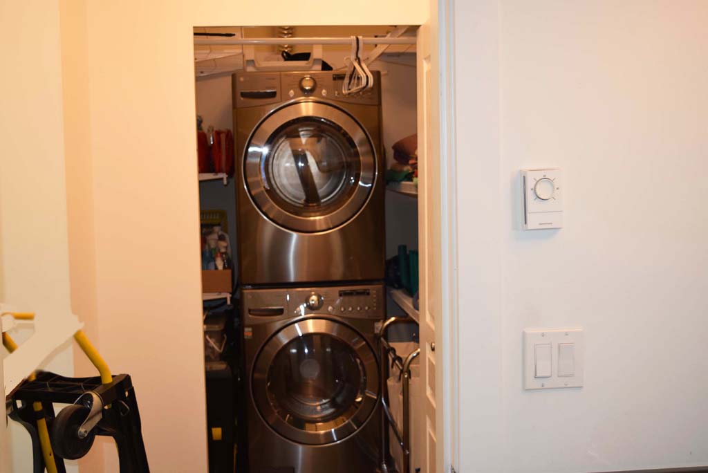 The apartment has in-suite laundry. The monthly rate includes cold and hot water, and strata fees. To rent must be added the extras cost electricity, and heat, totaling approximately $40 CAD.